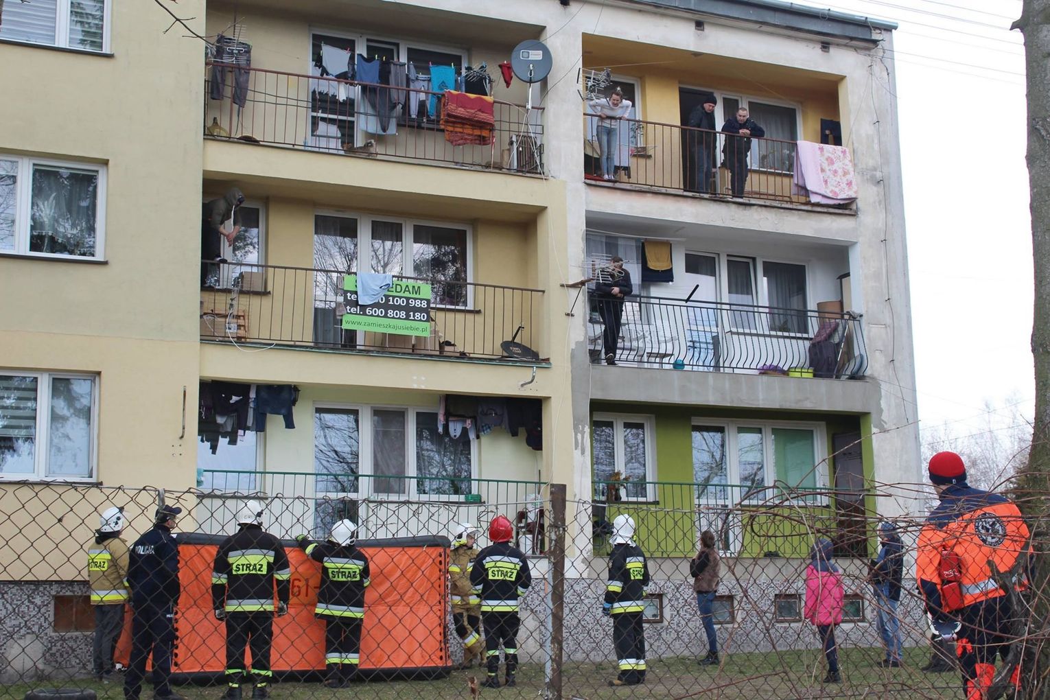 42 -latek przedostał się z balkonu na trzecim piętrze na balkon piętro niżej. Mieszkanie to było zamknięte, więc policjanci nie mogli go stamtąd ściągnąć siłą. Obawiano się, żeby nie skoczył. Strażacy rozłożyli więc poduszkę powietrzną, żeby w razie upadku można było zamortyzować uderzenie. Było też pogotowie. Wokół bloku zgromadzili się gapie.