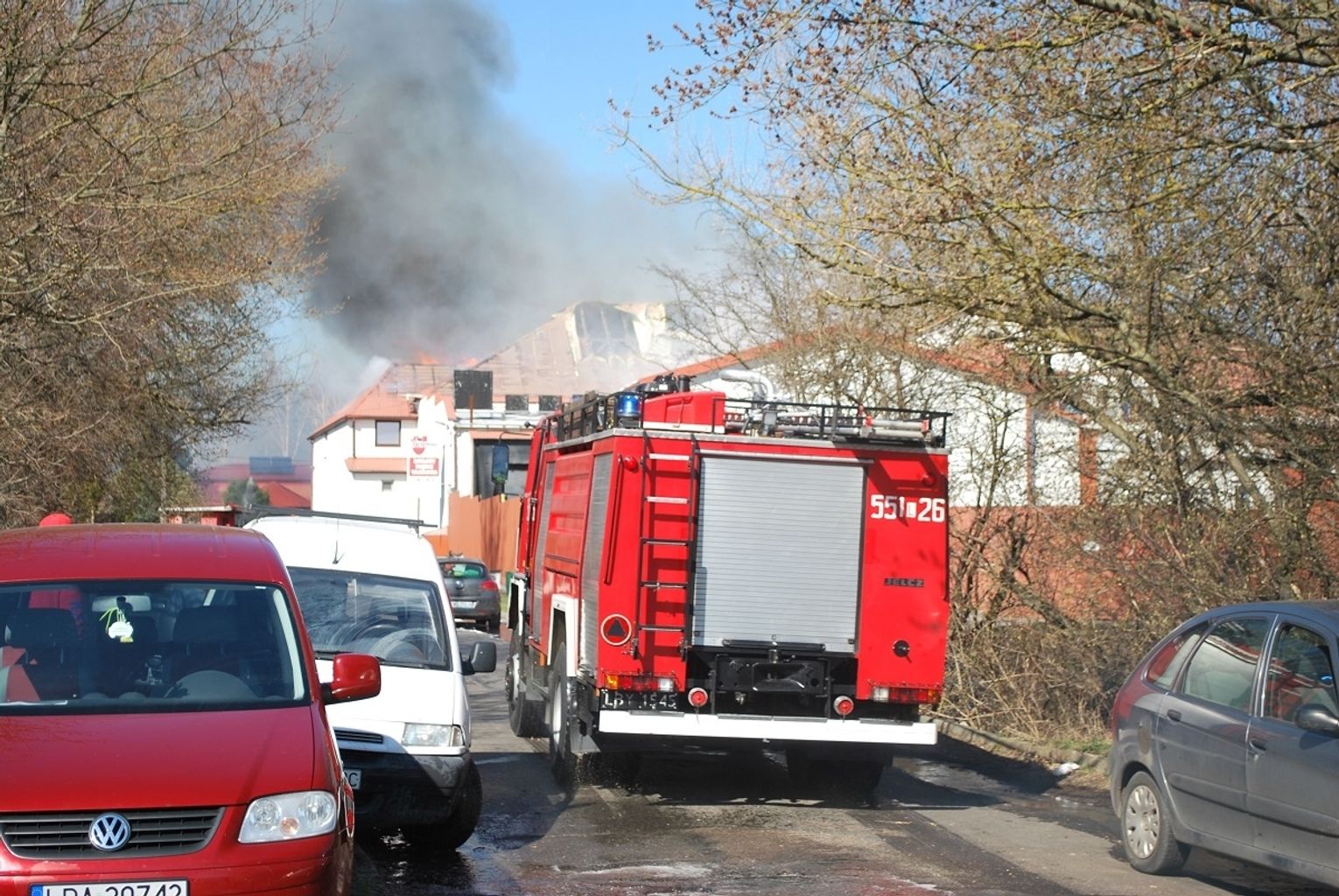 Dyżurny jednostki skierował do akcji dwa zastępy strażaków. Po przybyciu na miejsce dowódca stwierdził jednak, że ogień się rozszalał i nie opanują go dwie ekipy wyposażone w jeden podnośnik. Poprosił dyżurnego o dodatkowe wsparcie oraz drugi podnośnik z jednostki ratowniczo-gaśniczej w Łęcznej, bo bez dużej ilości wody podanej z góry nie uda się stłumić ognia. W kulminacyjnym momencie płomienie gasiło 50 strażaków z 15 ekip.