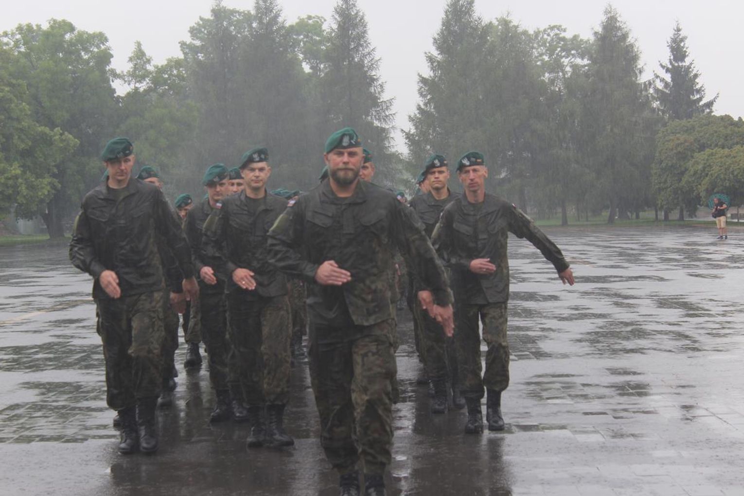 Z nieba lało, ale wszystko odbyło się zgodnie z programem. Na obchody Święta Wojska Polskiego do chełmskiej jednostki przybyli zaproszeni goście, kombatanci oraz rodziny i bliscy żołnierzy. Ze względu na niesprzyjającą aurę część przemówień nieco skrócono, ale parada po placu się odbyła. Nawet w gęstych strugach deszczu żołnierze nie tracili fasonu i prezentowali się profesjonalnie. Na szczęście po mokrych uroczystościach na wszystkich czekała gorąca grochówka.
