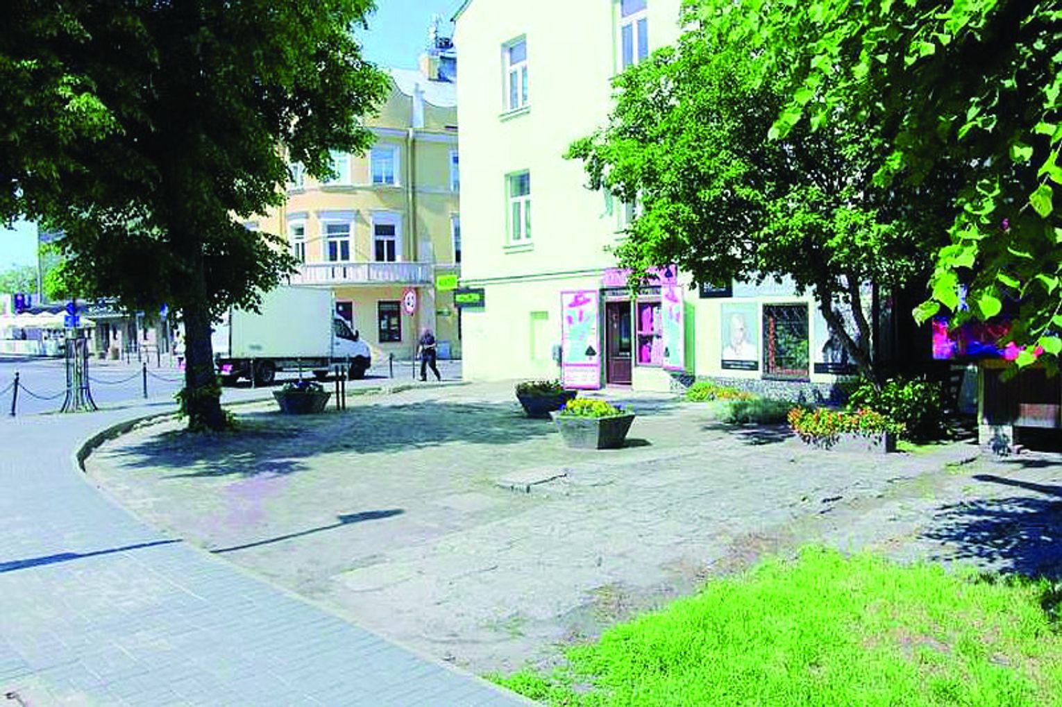 Zakres zamówienia obejmuje: zabezpieczenie istniejących drzew, roboty przygotowawcze, rozbiórkowe i ziemne, zabezpieczenie izolacyjne, wykonanie nawierzchni z kostki oraz nasadzeń i montaż małej architektury.
