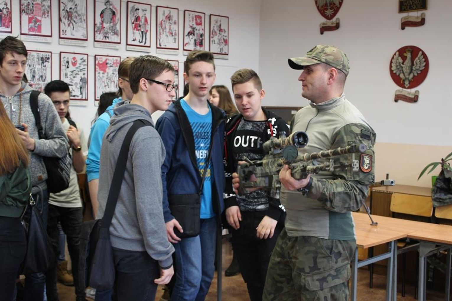 w służbach mundurowych. Ponadto, młodzież wzięła udział w konkursach zawodoznawczych oraz quizie o szkole. Każdy odwiedzający otrzymał drobny upominek – firmowe gadżety. Poza słodkim poczęstunkiem, uczestnicy spróbowali grochówki wojskowej.