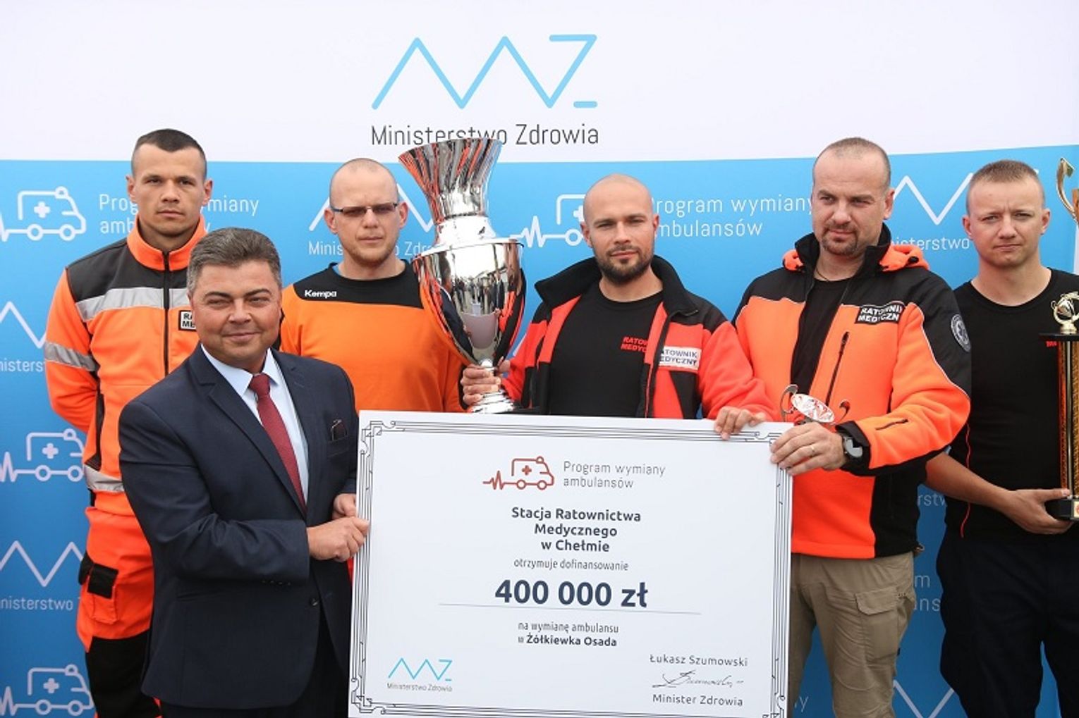 Wiadomo już, że ambulans będzie stacjonował w Żółkiewce, ale będzie w posiadaniu chełmskiej Stacji Ratownictwa Medycznego. Oprócz tego wsparcia, nie zabrakło także gratulacji dla ratowników medycznych, którzy kilka dni temu zostali Mistrzami Polski w ratownictwie medycznym. Pisaliśmy o tym TUTAJ.