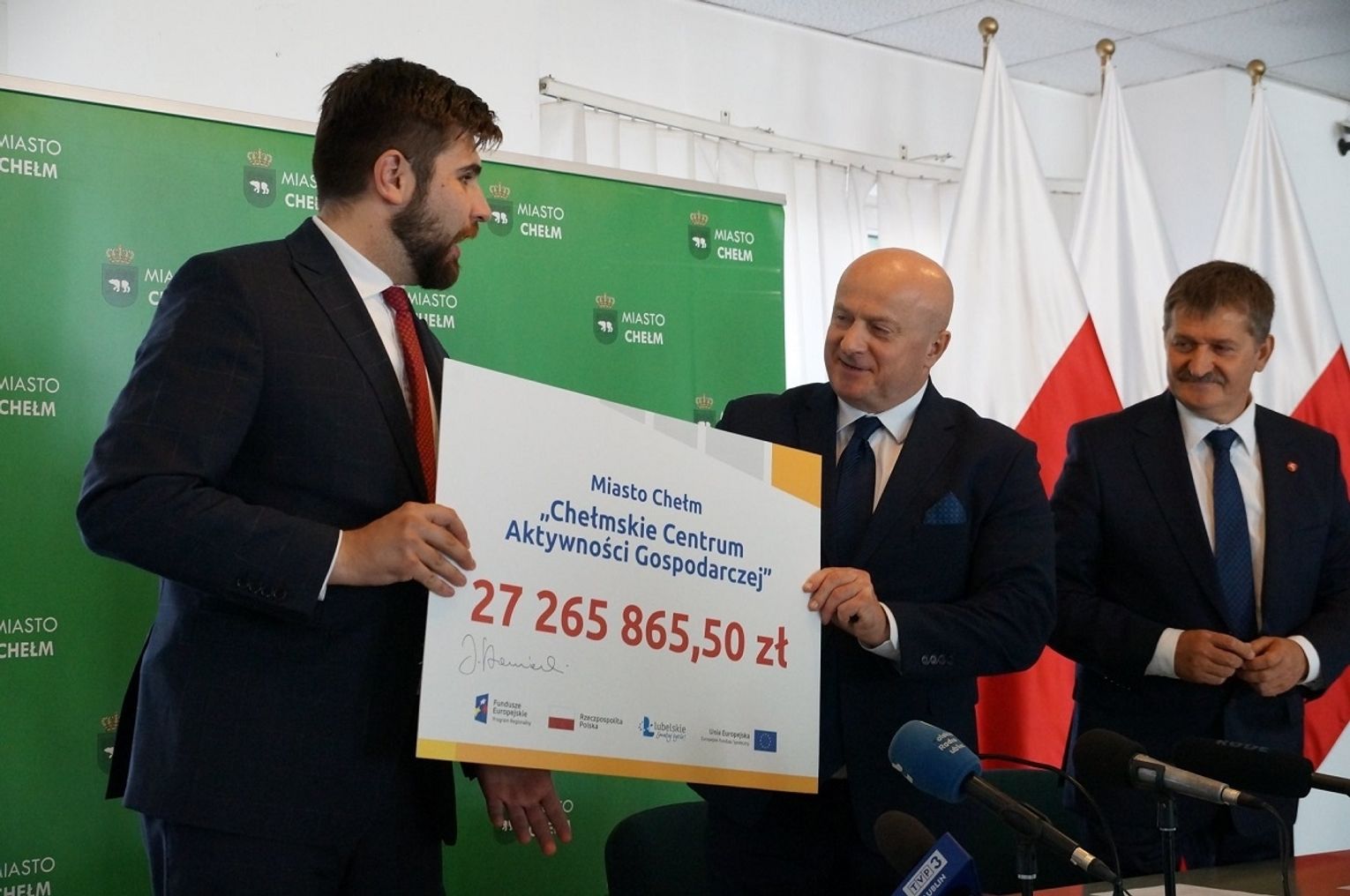 W ubiegły piątek prezydent Jakub Banaszek i marszałek województwa Jarosław Stawiarski, w obecności członka zarządu województwa lubelskiego z Chełma Zdzisława Szweda,uroczyście parafowali umowę na dofinansowanie Chełmskiego Centrum Aktywności Gospodarczej. Projekt zakłada stymulację wzrostu konkurencyjności gospodarczej Chełma i regionu, zmniejszenie bezrobocia oraz pozytywny wpływ na strukturę zawodową lokalnej społeczności.