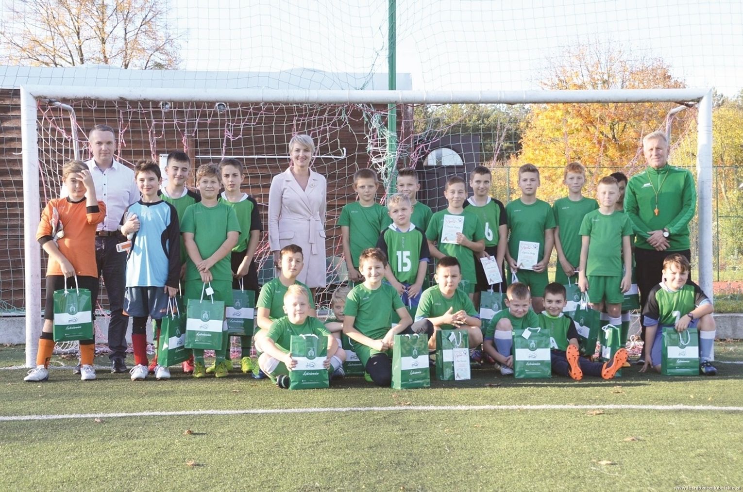 - Wśród naszych młodych piłkarzy widać wielkie zaangażowanie, młodzi zawodnicy wspaniale ze sobą współpracują, słuchają rad trenera i z wielkim przejęciem wykonują jego polecenia. Taka forma aktywności wspiera prawidłowy rozwój fizyczny dziecka – podkreśla Joanna Jabłońska, wójt gminy Leśniowice, która wraz z prezesem Astry Jackiem Stańkowskim, za dobrą postawę na boisku, wręczyła młodym piłkarzom drobne upominki.
