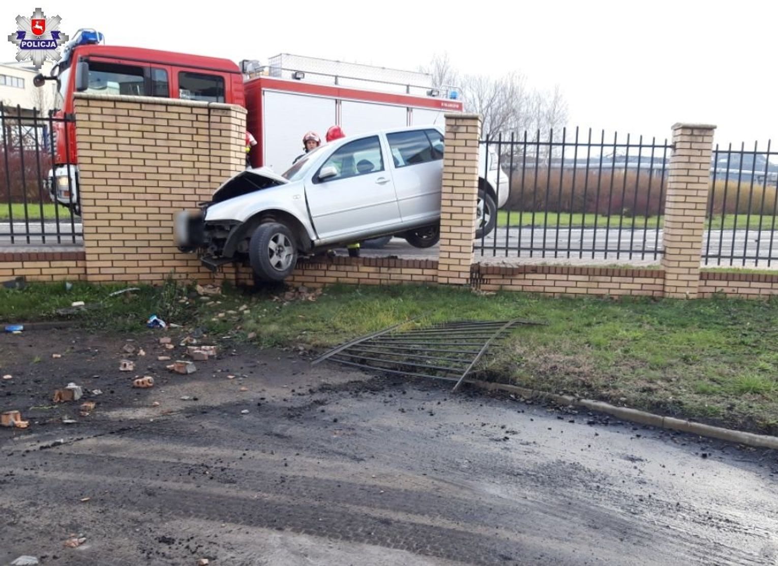 W wyniku siły uderzenia, pojazd osobowy staranował przęsła ogrodzenia, a następnie zatrzymał się na murowanej części ogrodzenia. W zdarzeniu najbardziej ucierpiał 45-letni kierowca osobówki, który wskutek doznanych obrażeń trafił do szpitala. Uczestnicy wypadku drogowego byli trzeźwi.
