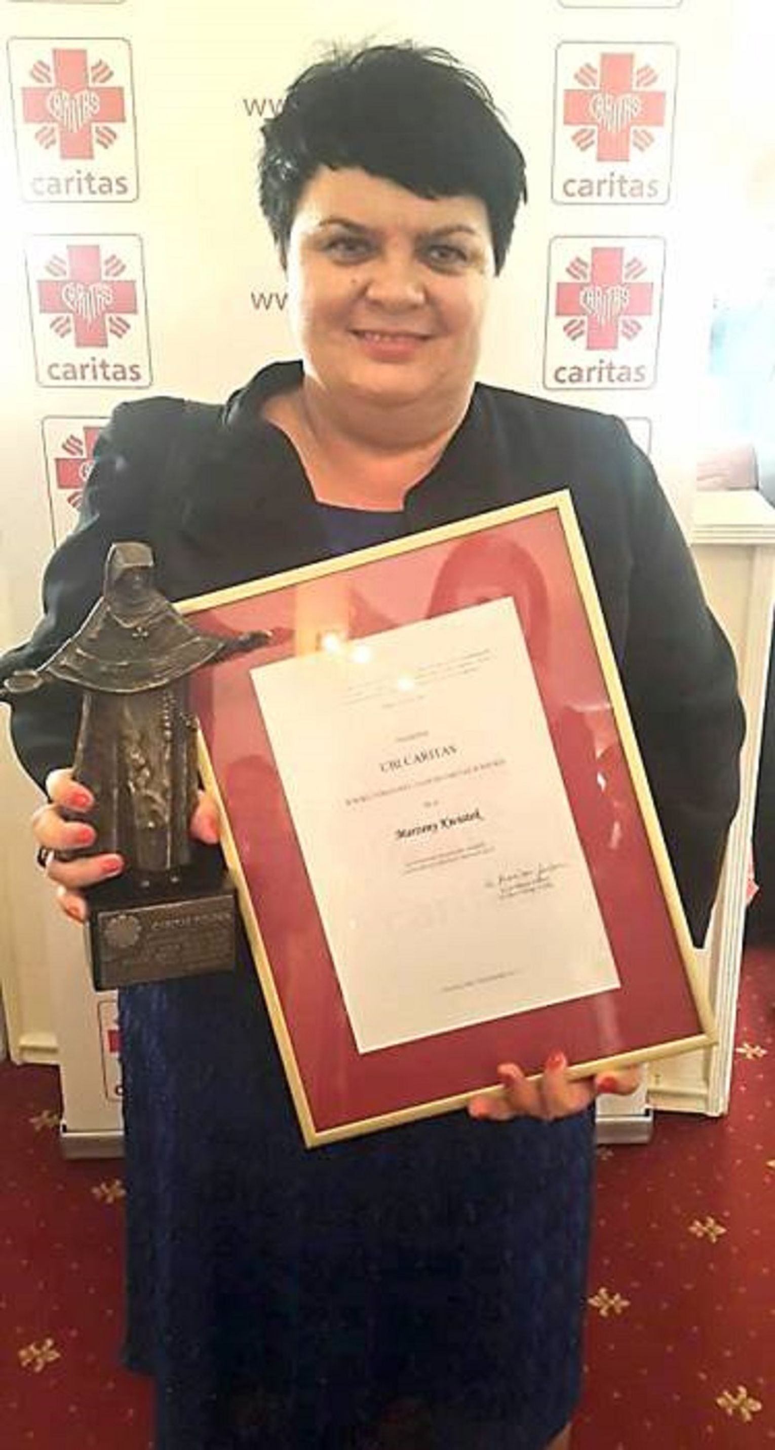 Ma na swoim koncie kilka nagród i wyróżnień: dwukrotnie nagrodzona została przez biskupa archidiecezji lubelskiej za szczególną aktywność w działaniu na rzecz najbardziej potrzebujących, uhonorowana za działalność Szkolnego Koła Caritas odznaczeniem Dantibus spem za propagowanie czynnej miłości bliźniego w procesie wychowania młodego pokolenia, w 2015 r. otrzymała ogólnopolską nagrodę Ubi Caritas za wrażliwość na potrzeby ubogich i czynny udział w dziełach charytatywnych. Ponadto na 10-lecie działalności stowarzyszenia Agape uhonorowana została statuetką Serce w dłoniach w podziękowaniu za działalność "Za czas, którego zawsze brakuje; Za cierpliwość, która często szwankuje; Za miłość, która Dzieła tego świata buduje; Za to wszystko ja Tobie dziękuje".