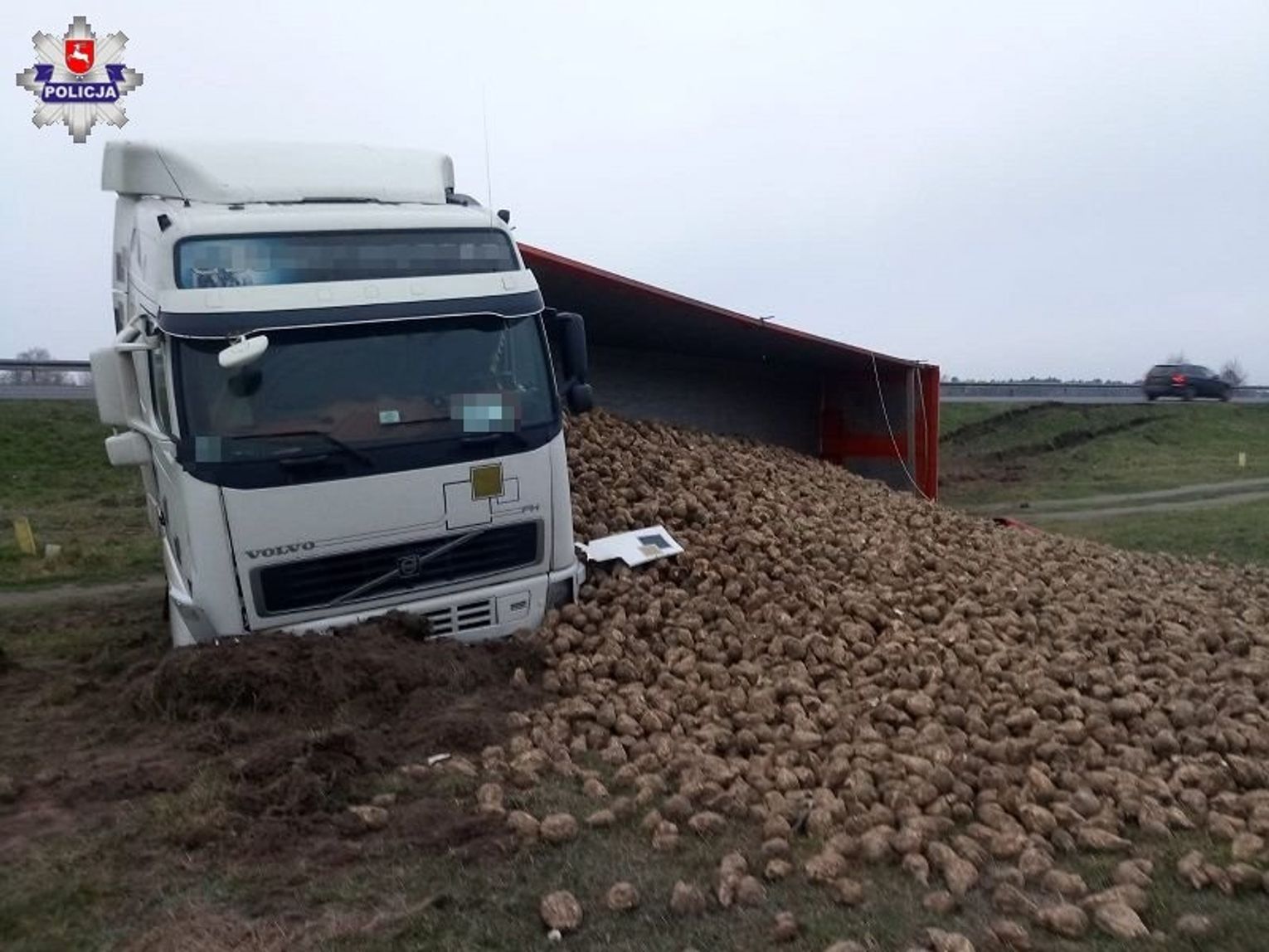 Do zdarzenia doszło po północy, kie to dyżurny komendy otrzymał zgłoszenie, że na obwodnicy Krasnegostawu, na drodze krajowej nr 17, ciężarówka przewożąca buraki cukrowe wpadła do rowu.
