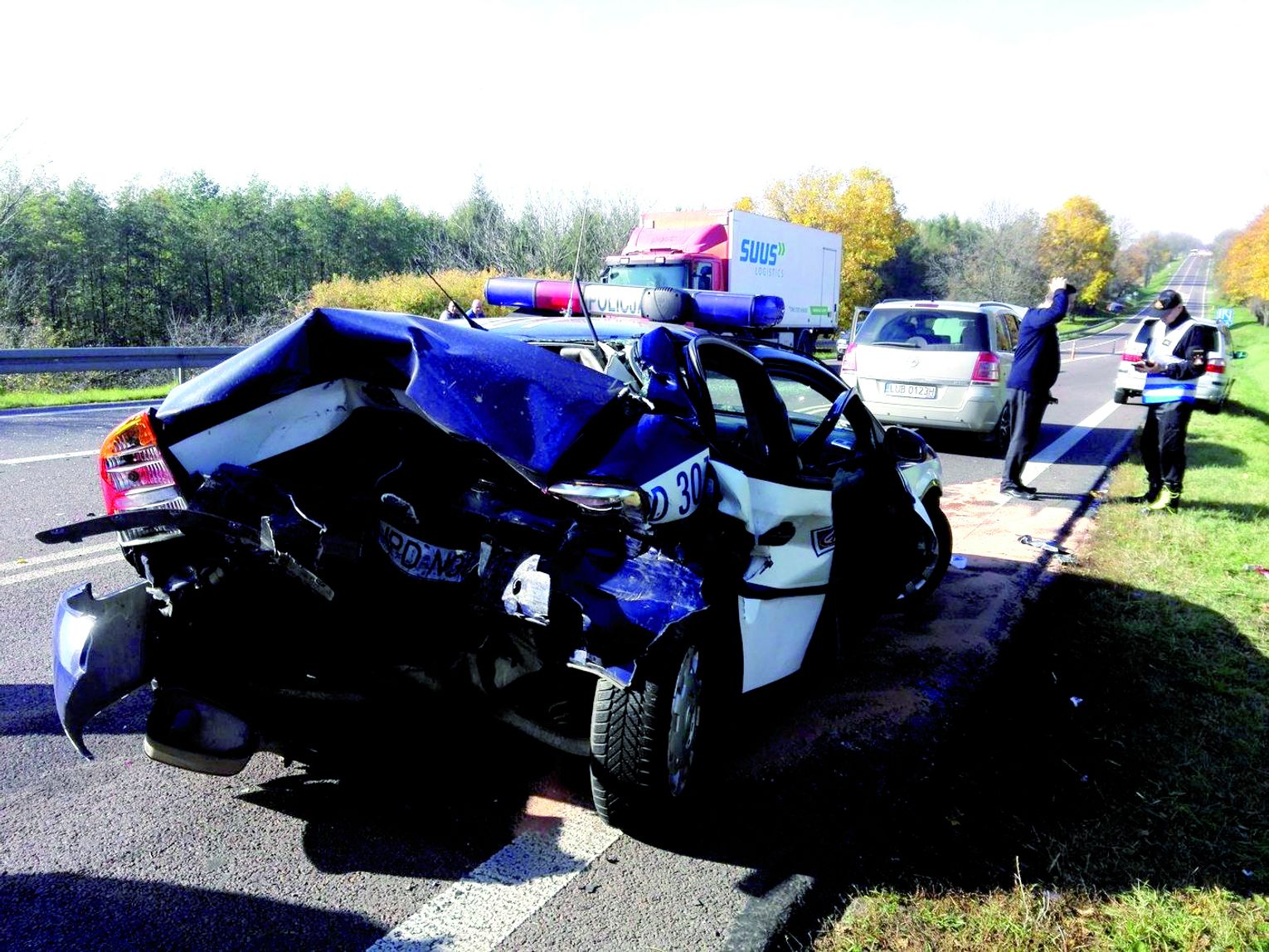 Siła uderzenia była tak duża, że policyjne auto obróciło się na drodze. Radiowóz znalazł się na przeciwległym pasie, a na koniec otarł się jeszcze o opla zafirę, jadącego w kierunku Lublina. Aby wydostać funkcjonariuszy z samochodu, strażacy musieli użyć specjalistycznego sprzętu. Obrażenia 32-letniej funkcjonariuszki okazały się śmiertelne. W wypadku ranny został też 37-letni policjant. Ucierpiał również 59-letni mieszkaniec gminy Zamość, który podczas wypadku stał obok radiowozu.