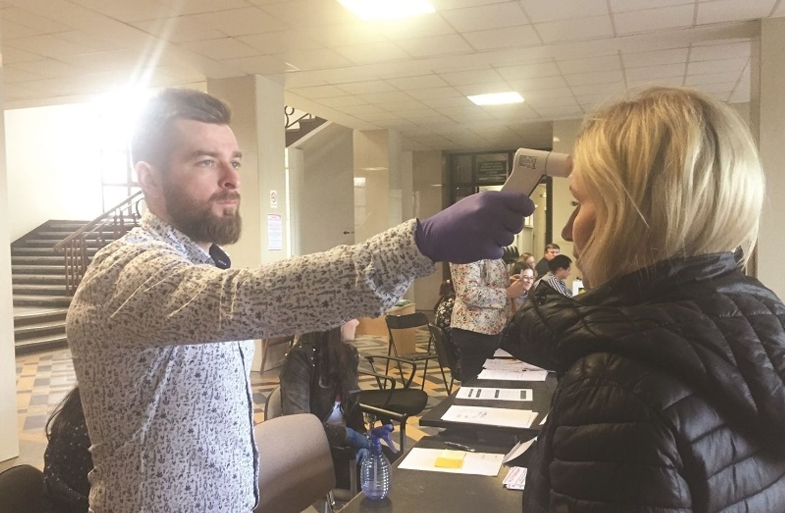 - W godzinach od 6.30 do 16 wszyscy petenci, bez względu na to, do której instytucji się udają, mają mierzoną temperaturę - relacjonował starosta Piotr Deniszczuk.