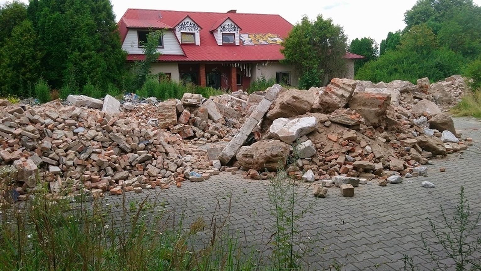 Gruz na byłej stacji paliw pojawił się 16 i 17 lipca br. Mieszkańcy uwiecznili to na zdjęciach. Sfotografowali tablice rejestracyjne samochodu ciężarowego i naczepy oraz rozładowane na placu odpady budowlane. W ubiegłym tygodniu była kolejna "dostawa". Łącznie wysypano 9 wywrotek gruzu.
