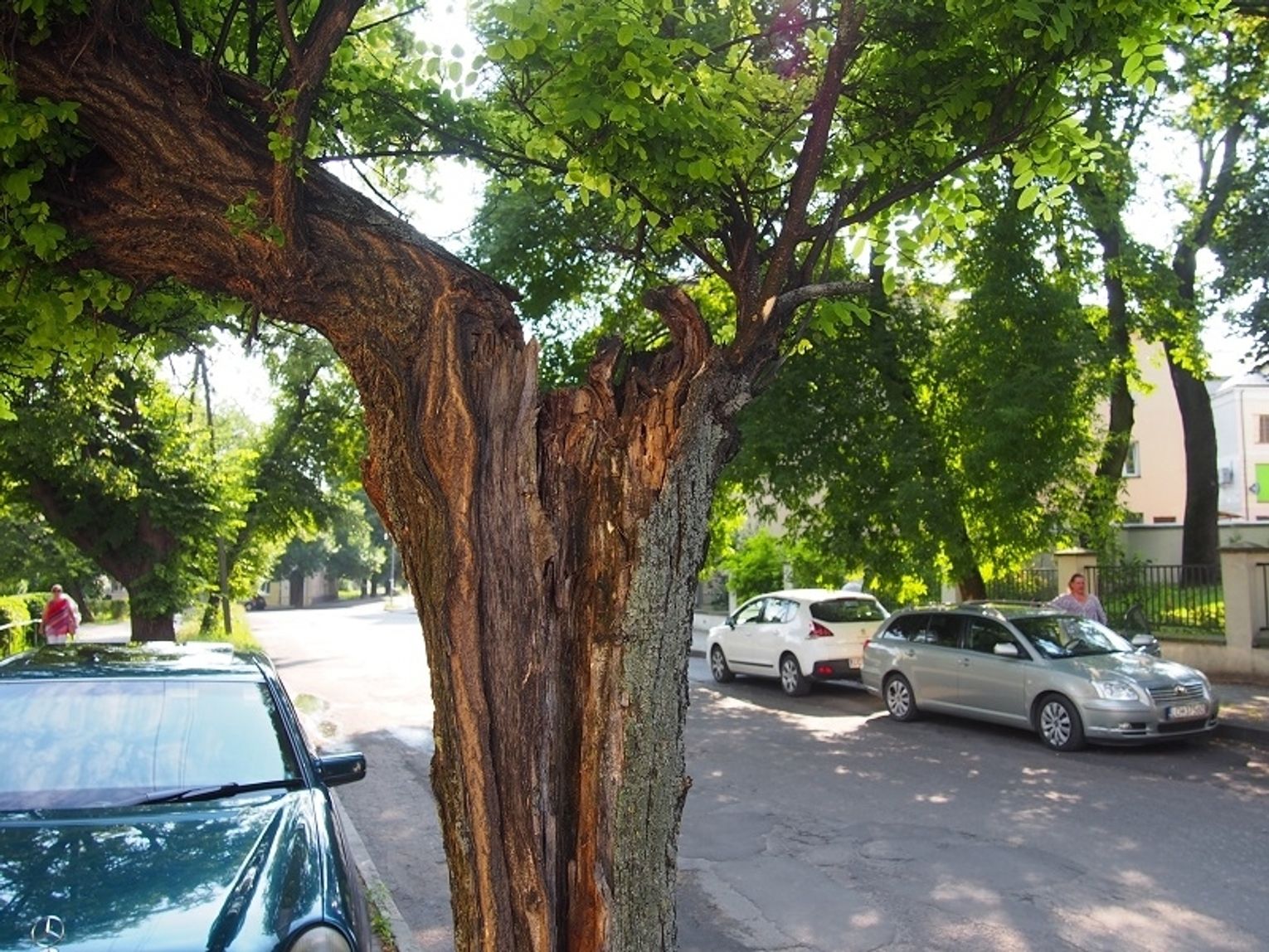 Akacja rozrosła się nad chodnikiem, dając cień przechodniom i osłaniając pobliski budynek. Z drugiej strony jest ulica. Być może gałęzie zbyt mocno przycinano lub się złamały, przez to ciężar korony rozłożył się nierówno i drzewo pękło. Jak się jednak okazuje, na ratowanie rozłożystej akacji jest już trochę za późno. Dostaliśmy złe wiadomości z urzędu miasta.