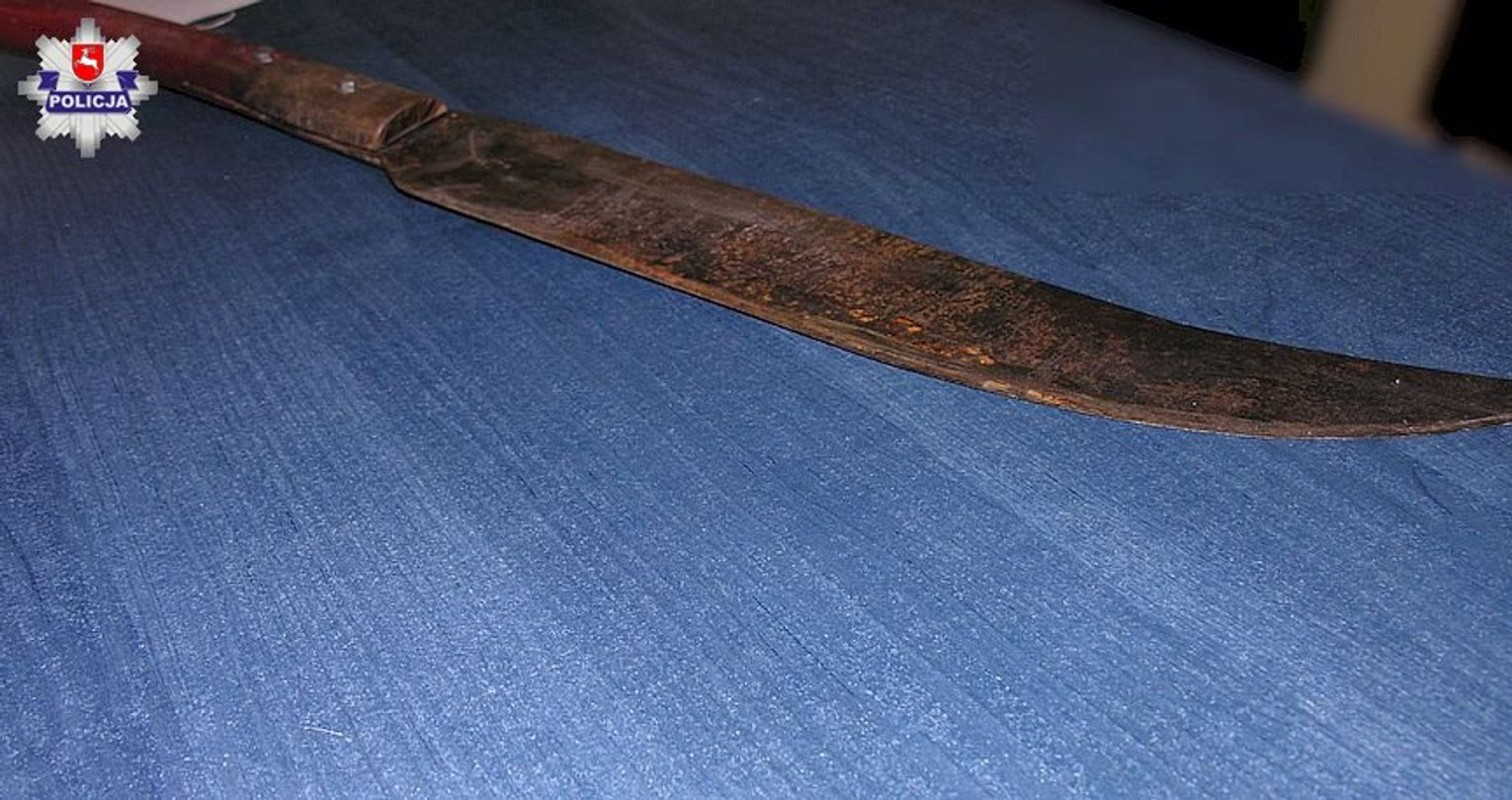 Policjanci z OPP Lublin znaleźli mężczyznę w miejscu swojego zamieszkania. Funkcjonariusze zatrzymali 54-latka z gminy Włodawa, a podczas przeszukania zabezpieczyli maczetę. Mężczyzna znajdował się pod znacznym działaniem, alkoholu, miał w organizmie prawie 2 promile. Pobrano od niego krew do analizy.