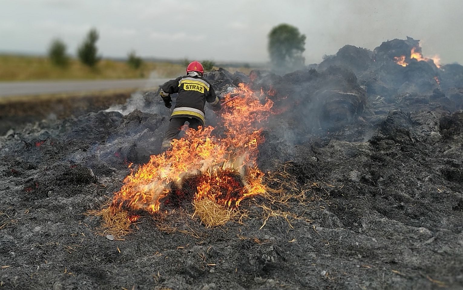 Ogień w szczerym polu nikomu i niczemu nie zagraża. Strażacy czekają aż wszystko się wypali. Od czasu do czasu strażacy rozciągają drapakami słomę, aby płomienie strawiły wszystko szybciej. Na szczęście w niedzielę sprzyjała im deszczowa pogoda. Akcja gaśnicza potrwa jeszcze co najmniej kilka godzin.