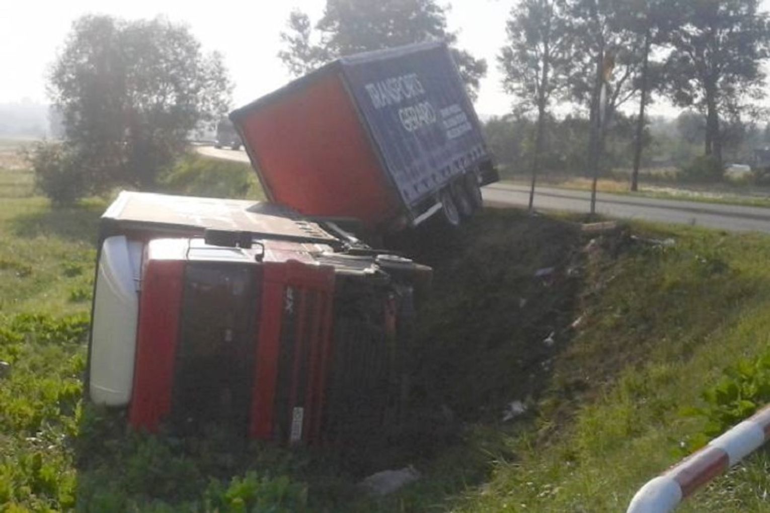 - Samochodem ciężarowym kierował 54-letni obywatel Ukrainy. Jechał sam i na szczęście nie odniósł poważnych obrażeń. Badanie alkomatem wykazało, że był trzeźwy. Jak ustalili mundurowi, mężczyzna zasnął za kierownicą. Na miejscu został ukarany mandatem karnym - informuje podkom. Piotr Wasilewski, rzecznik krasnostawskich policjantów.