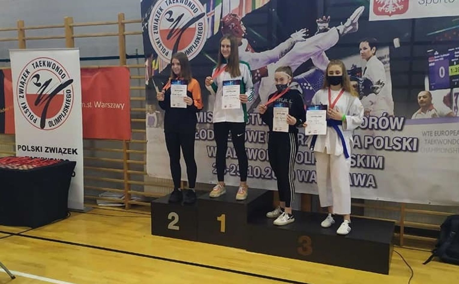 W rozegranym w stolicy Polski krajowym czempionacie juniorek i juniorów w taekwondo olimpijskim rywalizowało 250 osób. Ze względu na rządowe obostrzenia spowodowane pandemią koronawirusa zawody rozłożono na kilka dni. W Warszawie o medale walczyło czworo reprezentantów krasnostawskiego Sokoła. Szkoleniowiec tego klubu Grzegorz Brodzik wystawił do zmagań Kingę Fidecką, Laurę Olech, Daniela Banaszaka i Eryka Szparkowskiego. Najlepiej spisała się ta pierwsza zawodniczka, która uplasowała się na najniższym stopniu podium. W swojej premierowej walce krasnostawianka, rywalizująca w kategorii wagowej 63 kg, stoczyła zacięty bój z reprezentantką Gdańska. Regulaminowy czas pojedynku (3x1,5 min) nie przyniósł rozstrzygnięcia. Obie zawodniczki zdobyły bowiem po 12 punktów. Konieczna była zatem dogrywka, w której lepsza okazała się Fidecka.