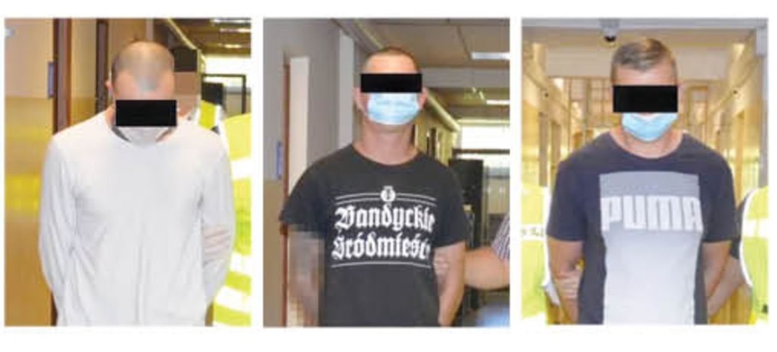 Skierowani na miejsce mundurowi zatrzymali nieopodal miejsca zdarzenia trzech mężczyzn w wieku od 28 do 32 lat, którzy odpowiadali podanemu rysopisowi. W chwili zatrzymania byli nietrzeźwi. Poszkodowany ich rozpoznał. Jeden z napastników był bardzo agresywny wobec policjantów, szczególnie jednego. Odgrażał się, że jego i jego rodzinę zabije, spali samochód, że wie, gdzie mieszka i po niego przyjdzie.