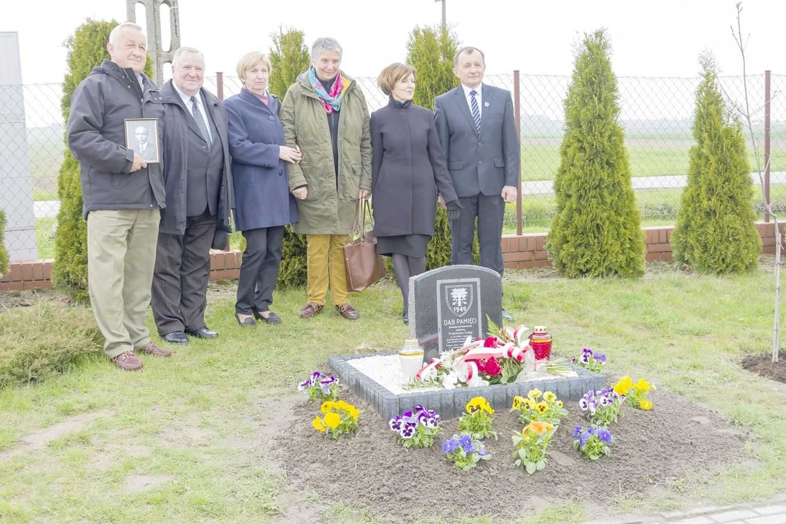 Dąb pamięci posadzili: posłanka Teresa Hałas, Krystyna Sawicka reprezentująca kuratorium oświaty, Elżbieta Wójcik, zastępca wójta Tomasz Barczuk, ks. dziekan Henryk Kapica, Wojciech Kostrzanowski - przewodniczący rady rodziców, uczennica gimnazjum Joanna Daniluk oraz dyrektor Henryk Długosz.