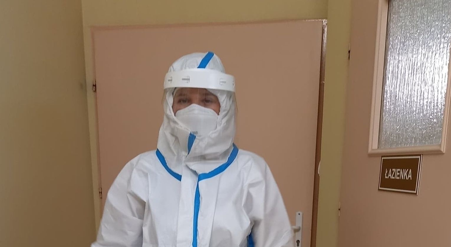 Te święta będą inne. Na wewnętrznym wszystkie łóżka są zajęte. Gdy ktoś jest wypisywany do domu, na jego miejsce przyjmowany jest ktoś inny. Nie ma żadnych odwiedzin. Tak jest na wszystkich oddziałach. Osoby z personelu medycznego, żeby wejść na salę chorych, muszą przebrać się w kombinezon, nałożyć gogle, przyłbice, dwie pary rękawiczek, ochraniacze na buty. Ze względu na obostrzenia nie będzie dzielenia się opłatkiem, tylko życzenia z „żółwikiem”. Wspólnego zjedzenia posiłku też nie będzie.