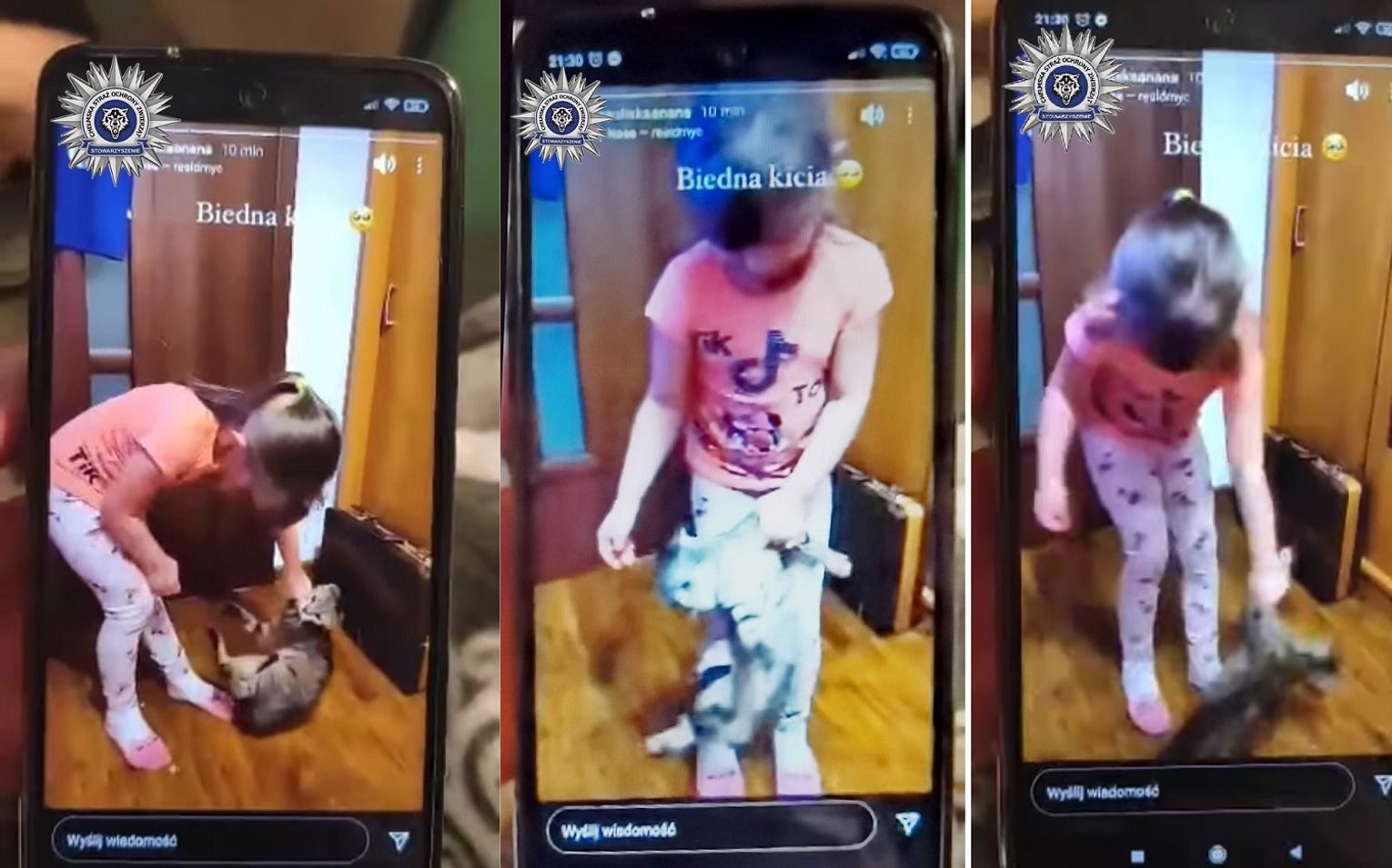 - Nagranie to było tym bardziej szokujące, że sprawcą jest mała dziewczynka, a autorem osoba pełnoletnia, która nie dość, że nie przerwała tego aktu, to wręcz zachęcała do dalszego znęcania się nad zwierzęciem, jednocześnie śmiejąc się z całej sytuacji, a następnie publikując nagranie na Instagramie. Jakim trzeba być potworem, osobą bez uczuć, zdemoralizowaną, by zrobić coś takiego? – zastanawiają się na swojej stronie facebookowej inspektorzy Stowarzyszenia Chełmska Straż Ochrony Zwierząt, którym aż trudno uwierzyć, że doszło do takiej sytuacji. - Dzięki wielkiemu zaangażowaniu internautów szybko udało się ustalić adres, pod którym przebywało zwierzę. Bez chwili zwłoki nasi inspektorzy, w asyście policji, udali się we właściwe miejsce. Ustawa o ochronie zwierząt wyraźnie definiuje: "Przez znęcanie się nad zwierzętami należy rozumieć zadawanie albo świadome dopuszczanie do zadawania bólu lub cierpień". Zatem, w świetle niepodważalnych dowodów w postaci nagrania, nasi inspektorzy zjawili się pod wskazanym adresem w celu odebrania kota w trybie art. 7 ust. 3 ustawy o ochronie zwierząt.