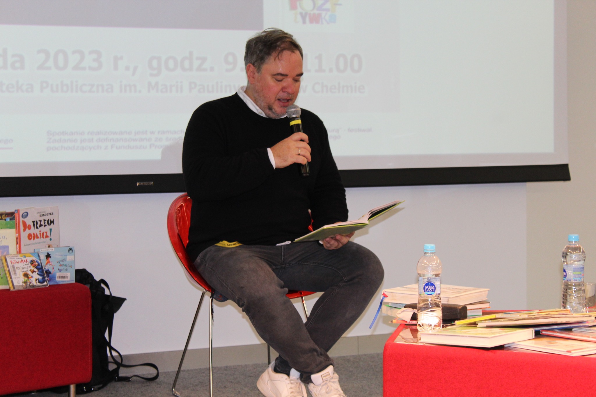 W poniedziałek (6 listopada) w sali widowiskowej Chełmskiej Biblioteki Publicznej (ul. Partyzantów 40) odbyło się spotkanie z Grzegorzem Kasdepke - jednym z najpopularniejszych polskich pisarzy dla dzieci. Były wieloletni redaktor naczelny magazynu „Świerszczyk“ opublikował ponad 60 książek, z których większość cieszyła się statusem bestselleru (m.in. „Mam prawo”, „Kuba i Buba”, „Tylko bez całowania”, „A ja nie chcę być księżniczką”, „Mity dla dzieci", „Koronkowa robota").