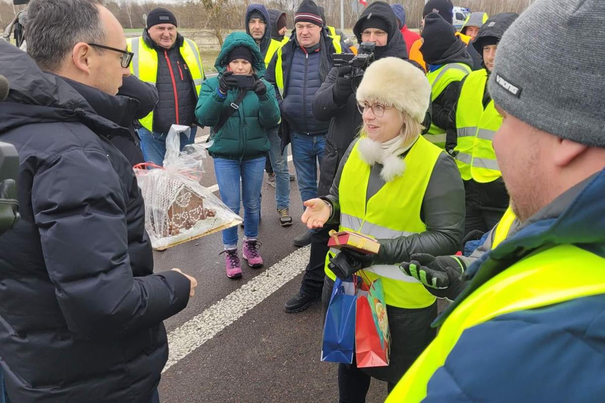 Dorohusk. Minister Infrastruktury spotkał się z protestującymi przewoźnikami i podzielił opłatkiem