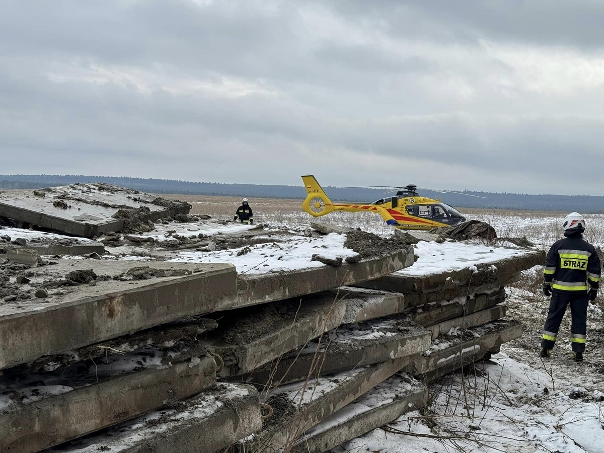 Akcja ratownicza! Mężczyzna przygnieciony przez betonową płyt [ZDJĘCIA]