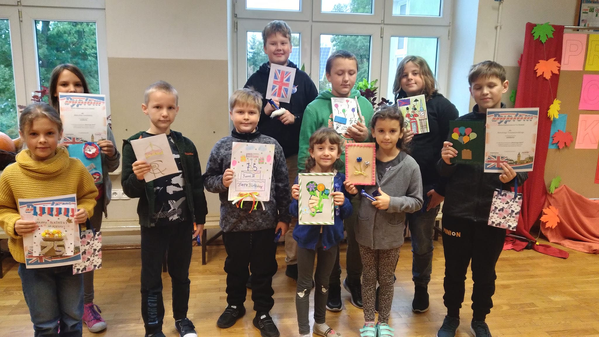 Uczniowie Szkoły Podstawowej nr 2 w Chełmie wykonali kartki urodzinowe dla króla Karola III. Nagrodzone kartki zostały wysłane do Wielkiej Brytanii. Laureatami konkursu zostali: Kornelia z klasy III, Antoś z klasy IV oraz Marcelina z klasy IV.