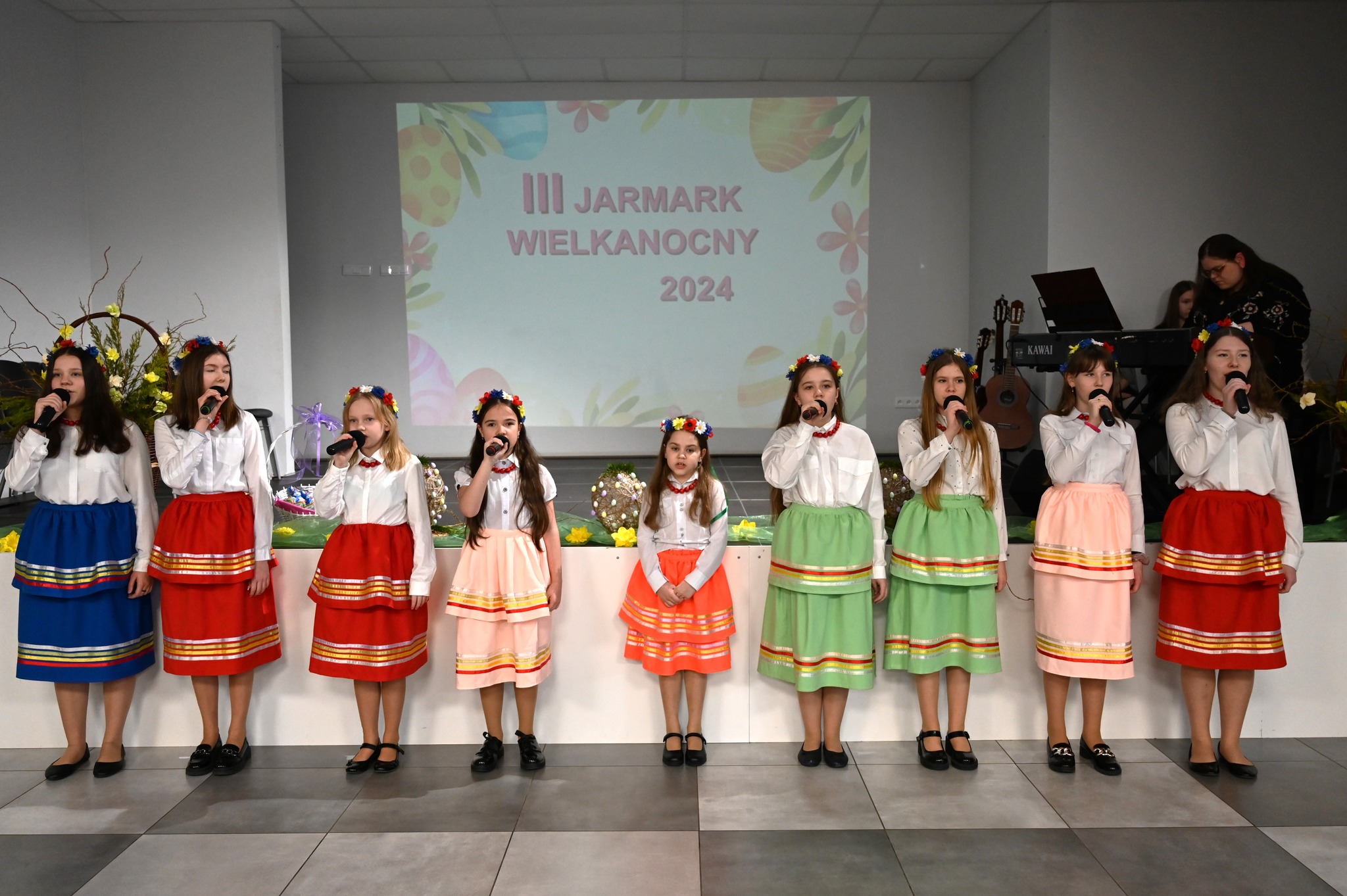 Wzięły w nim udział koła gospodyń wiejskich z terenu gminy Rejowiec Fabryczny: Gołębianki, Kalina i Bzdunki, Kwiaciarnia u Violi oraz Created by Jo Joanna Żołnacz. Podczas wydarzenia można było zakupić przepyszne ciasta, pierogi, piękne palmy i stroiki wielkanocne, świąteczną ceramikę oraz inne ozdoby. Na scenie gościnnie wystąpiły dzieci z oddziału przedszkolnego Niepublicznej Szkoły Podstawowej im. Sługi Bożego o. Jacka Woronieckiego w Kaniem. Zaprezentował się również Zespół dziecięco-młodzieżowy Łyszcz oraz uczestnicy zajęć w GOK. Podziękowania oraz słodkie upominki za wspaniałe występy wszystkim młodym artystom wręczyli Zdzisław Krupa, wójt gminy Rejowiec Fabryczny oraz Agnieszka Herda, dyrektor GOK. Podczas jarmarku przeprowadzono dla dzieci warsztaty wielkanocne.