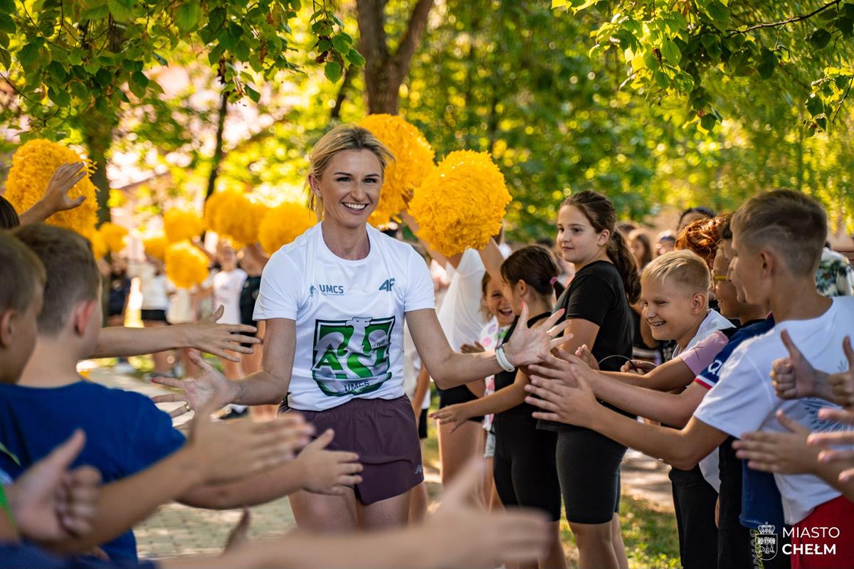 W ramach nowego cyklu spotkań organizowanego przez Chełmski Klub Sportowy Chełm odwiedziła w piątek (6 września) Małgorzata Hołub-Kowalik - utytułowana polska lekkoatletka, mistrzyni i wicemistrzyni olimpijska. Razem z naszą chełmską rekordzistką Polski w biegu na 300 metrów - Wiktorią Gajosz lekkoatletki przeprowadziły wspólną rozgrzewkę wśród uczniów Szkoły Podstawowej nr 5 w Chełmie . Były też rozmowy, wspólne zdjęcia oraz autografy.