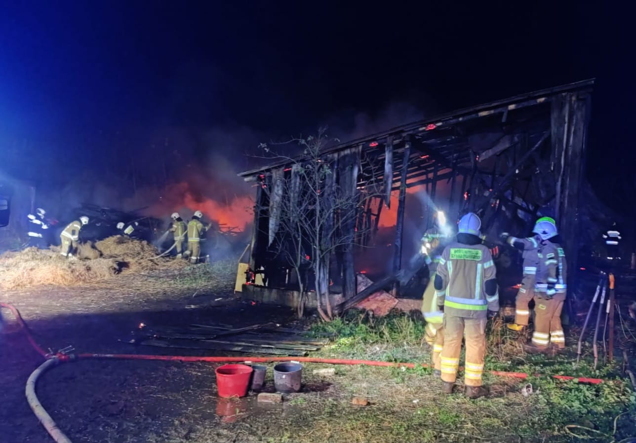 Pow. krasnostawski. Nocny pożar obory w Tarnogórze. Ktoś zaprószył ogień? [GALERIA ZDJĘĆ]