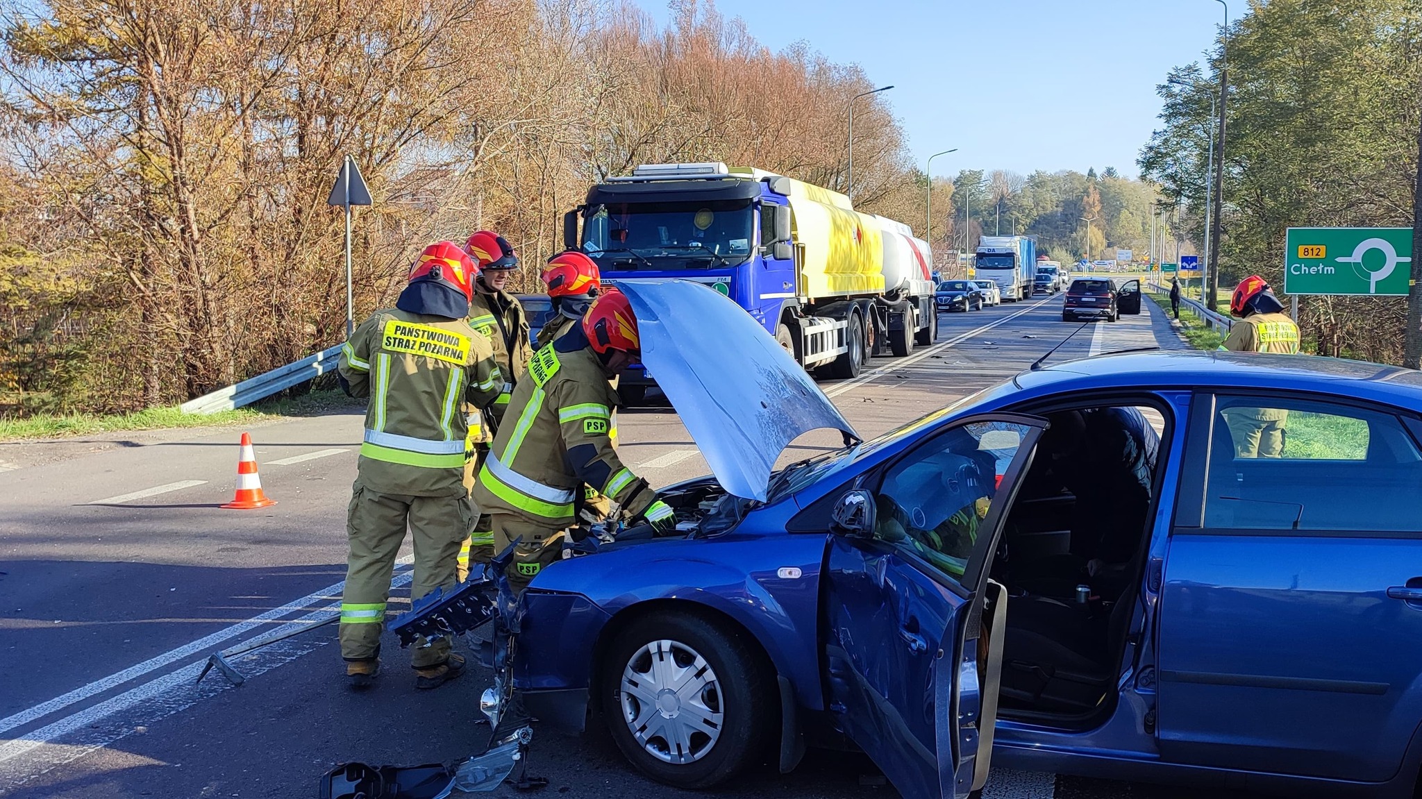 Krasnystaw. Cysterna zderzyła się z osobówkami [ZDJĘCIA]
