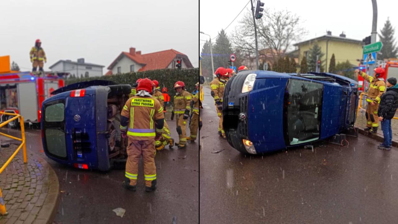 Sytuacja wyglądała groźnie. Jedna z osobówek po zderzeniu przewróciła się na bok. Na szczęście nikt nie odniósł poważnych obrażeń.