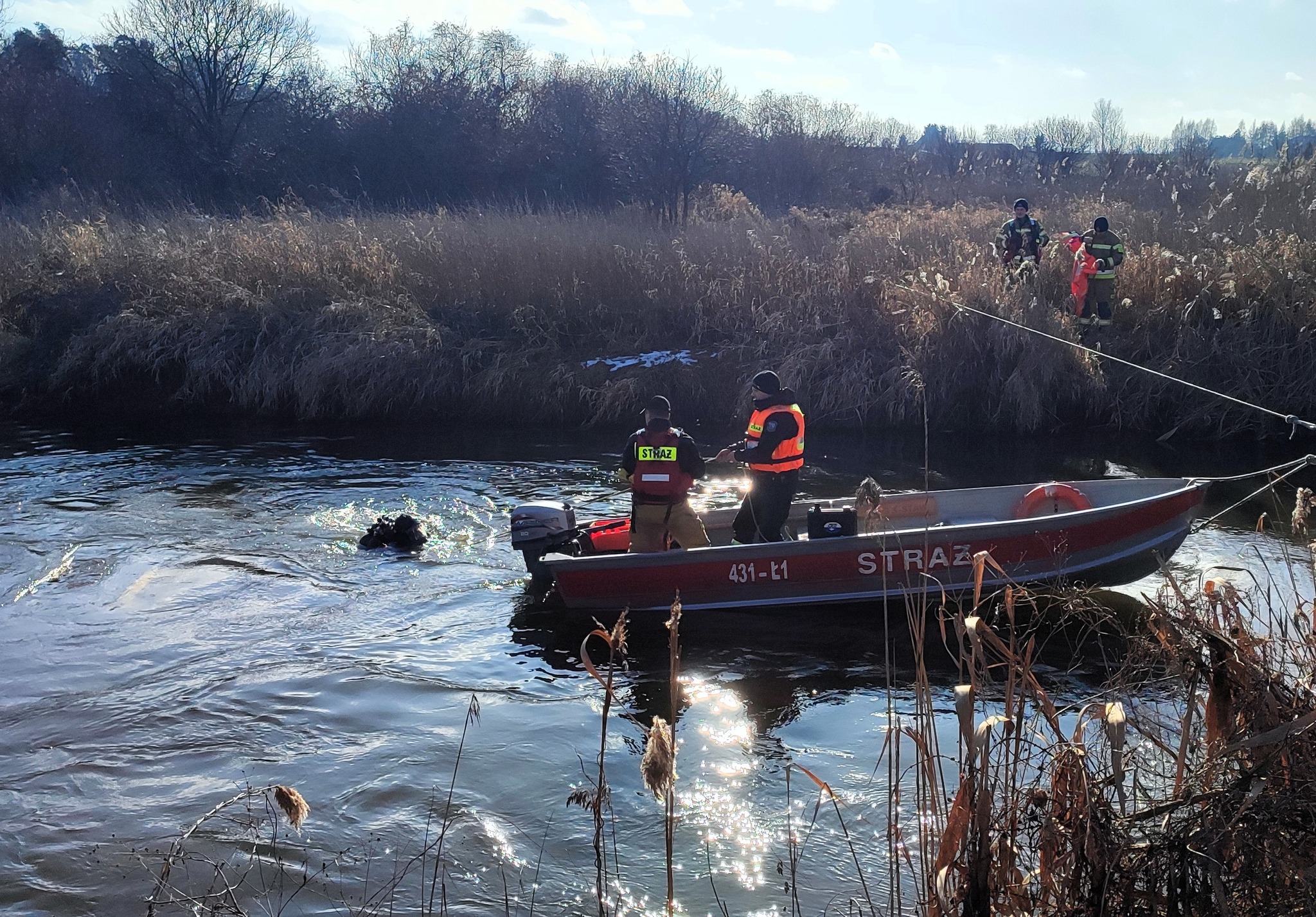 Pow. krasnostawski. 47-latek wjechał autem do Wieprza. Chciał sprawdzić poziom wody [GALERIA ZDJĘĆ]