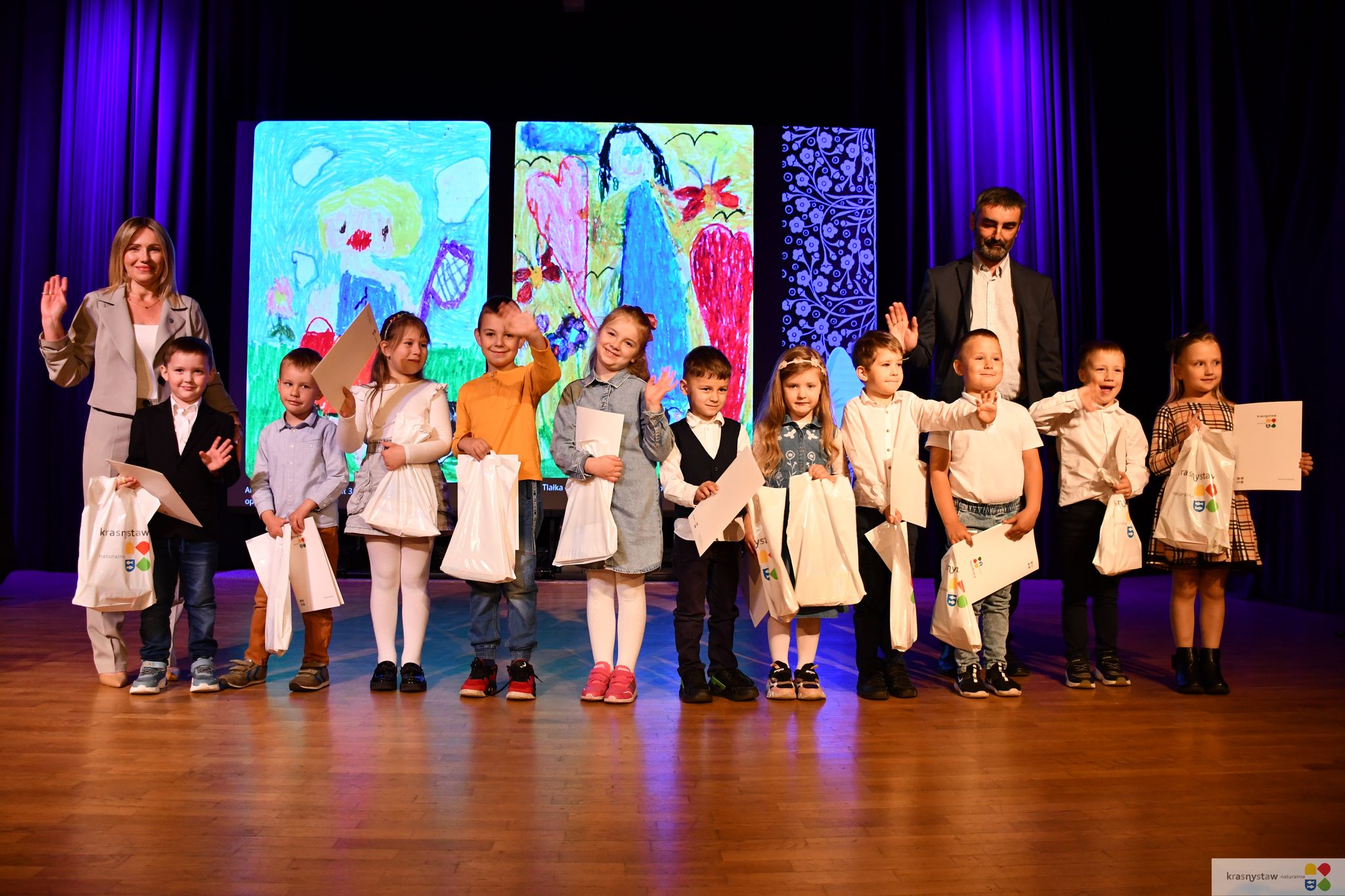 W piątek (23 maja) w Krasnostawskim Domu Kultury odbył się finał XIX edycji konkursu plastycznego „Moja Mama”. „Moja Mama Superbohaterka”– na ten temat powstało aż 226 prac. Jury przyznało nagrody 13 przedszkolakom za wyjątkową samodzielność i artystyczny wyraz. Wyróżnienia trafiły aż do 45 dzieci. Wydarzenie uświetnił występ dzieci z Przedszkola Nr 4 im. Kubusia Puchatka w Krasnymstawie. Nagrody wręczyli dyrektor KDK Damian Kozyrski i Monika Sawa - zastępca burmistrza Krasnegostawu.