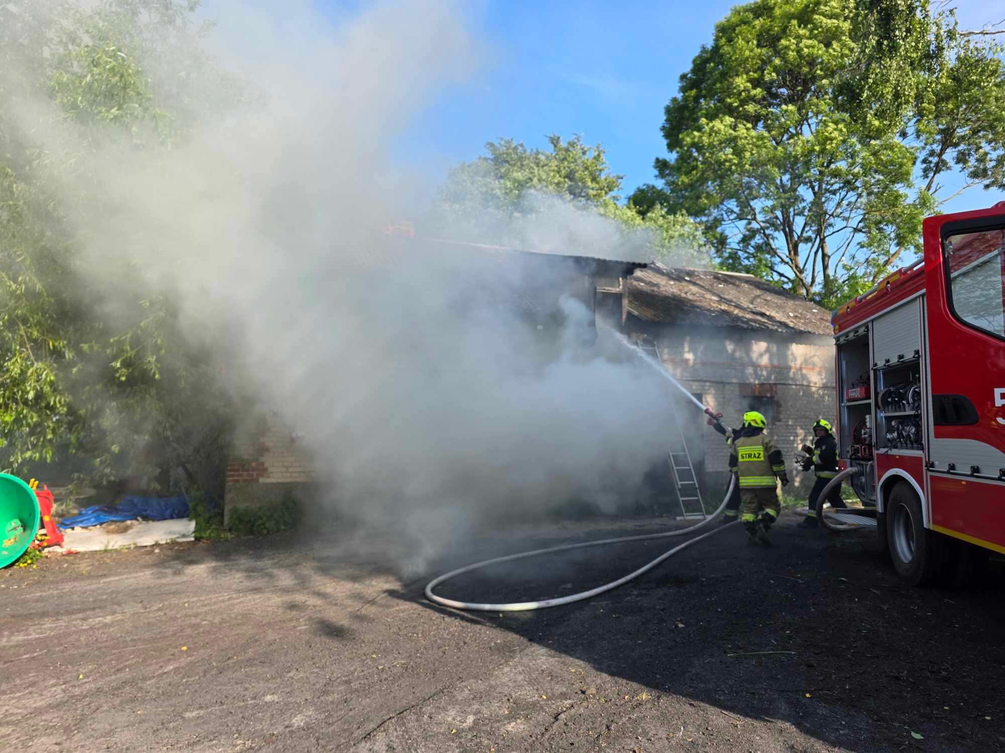 Gm. Urszulin. Pożar obory w Sękowie. Akcja strażaków trwała dwie godziny [ZDJĘCIA]