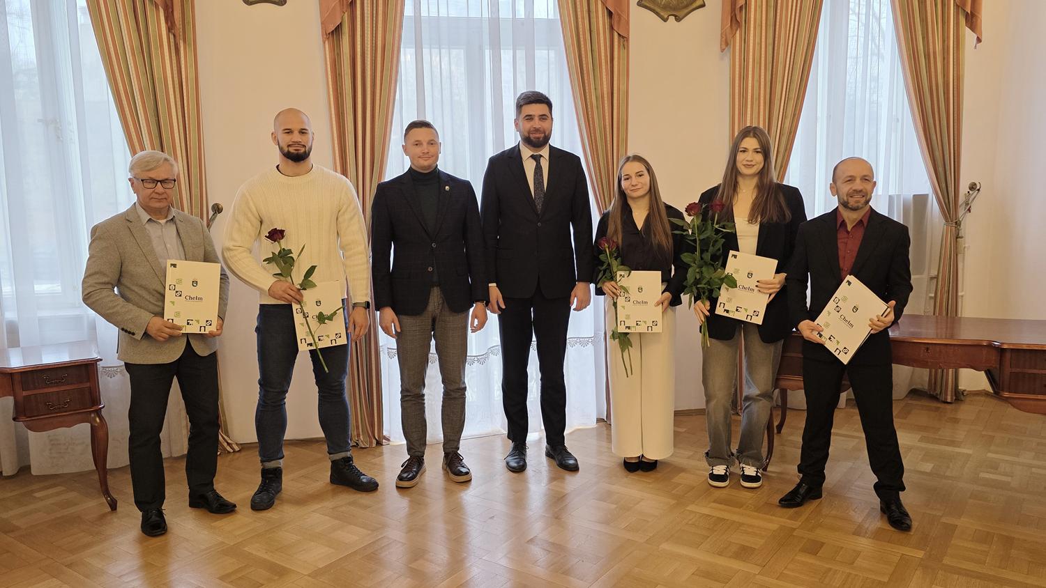 Prezydent Chełma Jakub Banaszek oraz przewodniczący Rady Sportu, radny Rady Miasta Chełm Wojciech Wójcik wręczyli nagrody dla sportowców oraz trenerów prowadzących szkolenie zawodników osiągających wysokie wyniki sportowe za rok 2024.