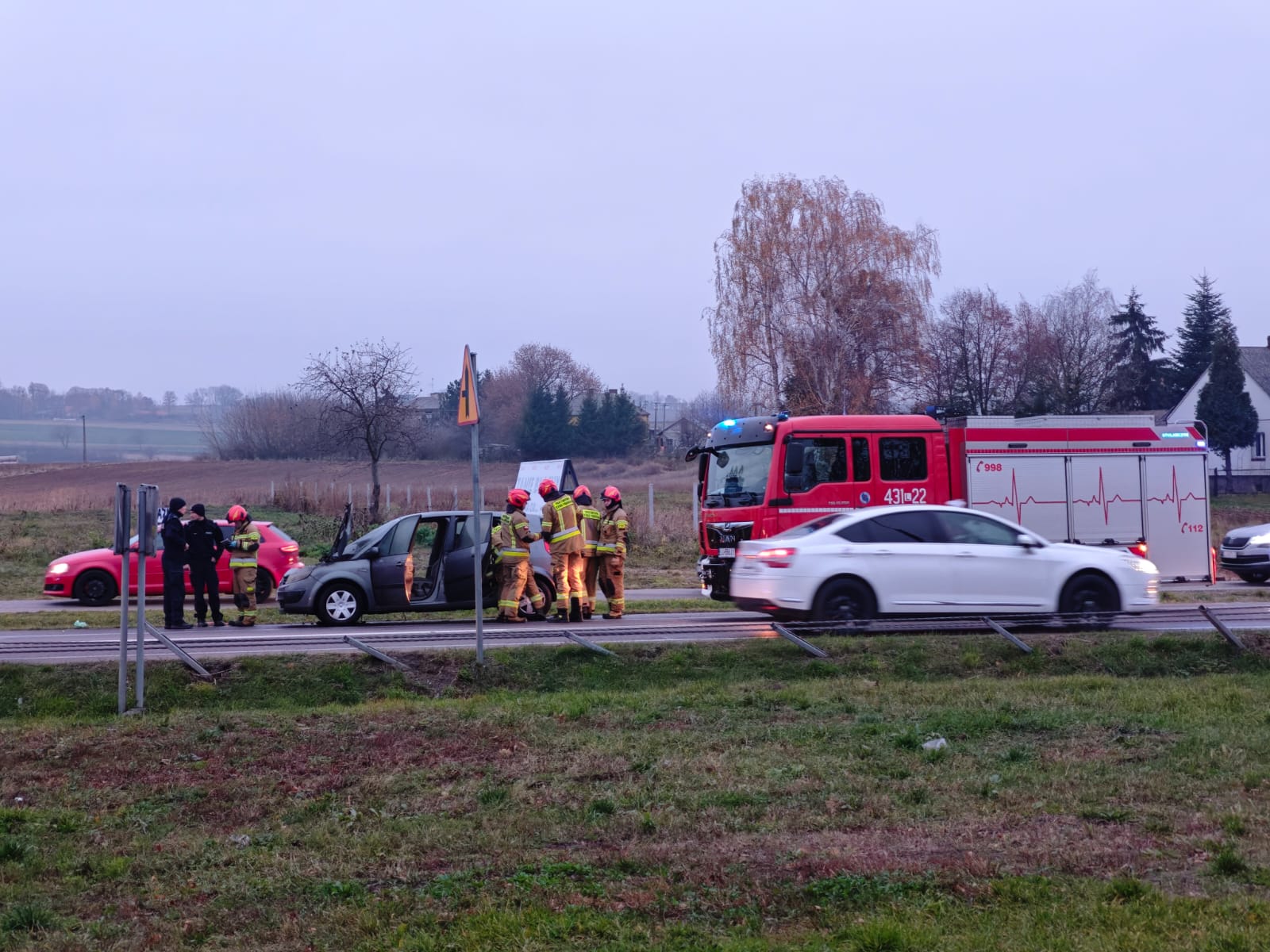 Do pożaru osobowego renault doszło około godziny 15.00 na drodze krajowej nr 17 na wjeździe na obwodnicę Krasnegostawu.