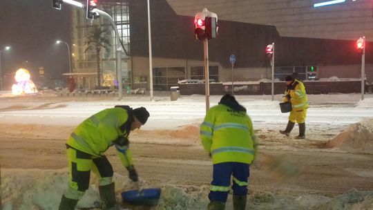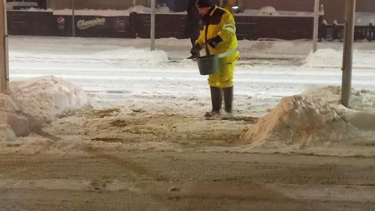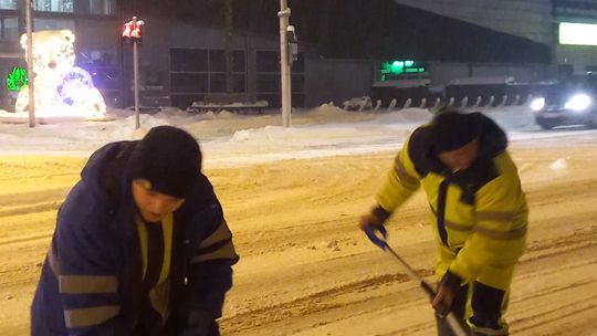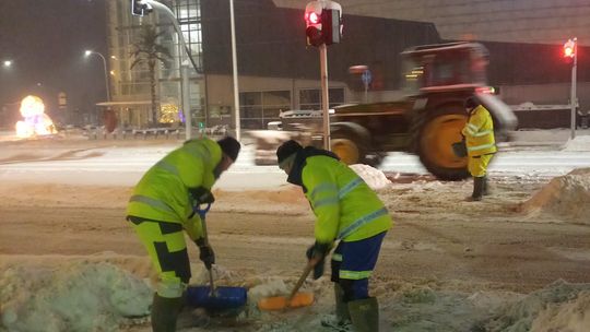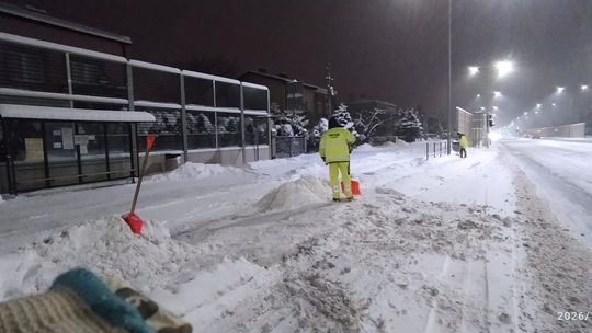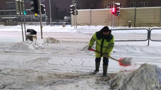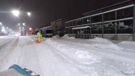 Od wczesnych godzin porannych służby miejskie prowadzą intensywne prace związane z odśnieżaniem przystanków, chodników, przejść dla pieszych i ulic. W akcji są zarówno maszyny, jak i pracownicy wykonujący prace ręcznie. Wszystkie służby działają na bieżąco, dbając o bezpieczeństwo i sprawne funkcjonowanie miasta.