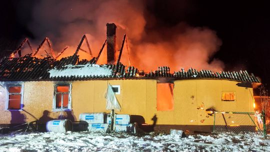 Dramatyczne zdarzenia w Dołhobrodach w gminie Hanna. Budynek jednorodzinny stanął w płomieniach. Nie żyje seniorka, która w momencie pożaru była w domu.