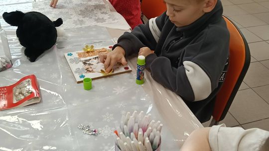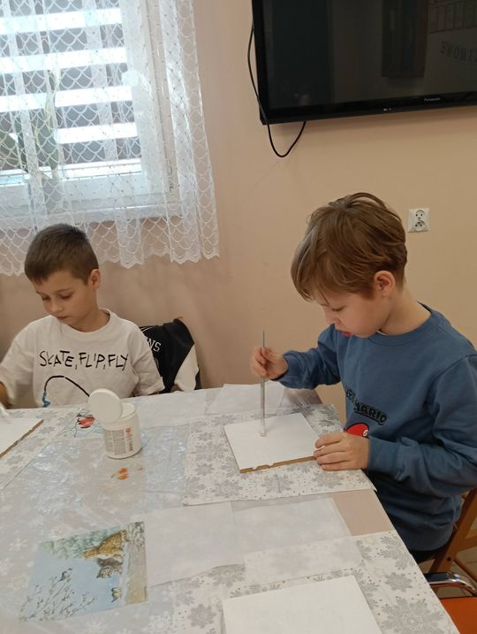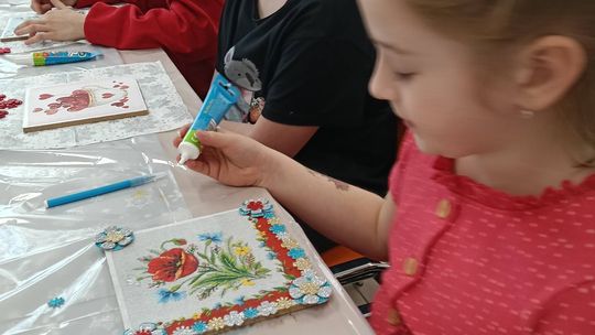 Podopieczni ze Świetlicy Stare Depułtycze owocnie wykorzystali ostatnie dni ferii. Dzięki uprzejmości Centrum Bibliotek i Kultury Gminy Chełm w Okszowie dzieci poznały technikę decoupage z wykorzystaniem metody przeprasowania, która polega na przenoszeniu wzoru na drewnianą powierzchnię. Uczestnicy spotkania tworzyli prace wedle wskazówek, ucząc się przy tym dokładności i cierpliwości.