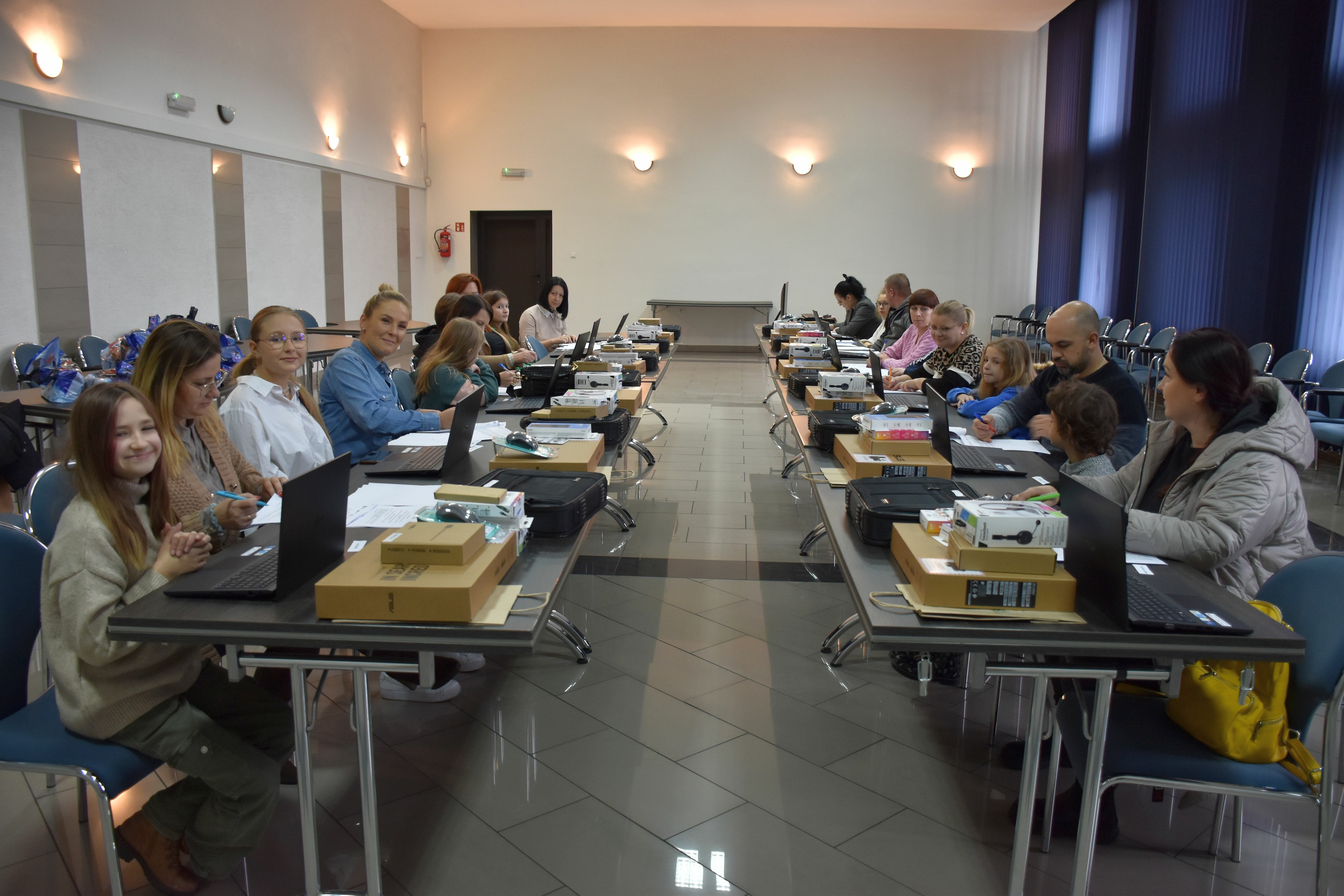 Fajsławice. Wójt Pędzisz rozdaje dzieciom komputery