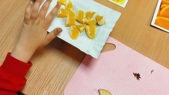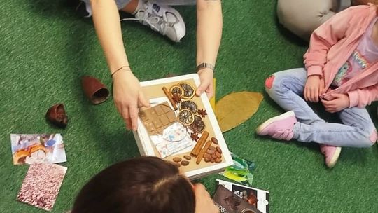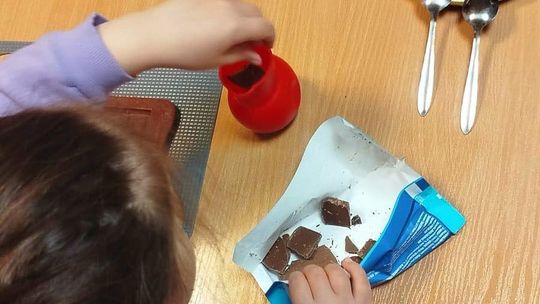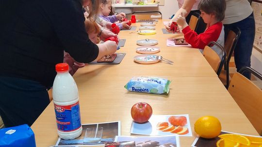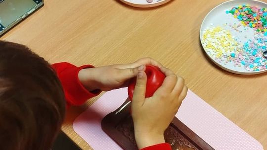 Warsztaty w ramach projektu „Wielka Piątka” tym razem poświęcone były zmysłowi smaku. Dzieci poznawały owoce i różne rodzaje czekolady poprzez zabawę, dopasowywanie ilustracji oraz ćwiczenia językowe. Na zakończenie, z okazji Dnia Czekolady, samodzielnie przygotowały i udekorowały własne tabliczki, wypełniając salę zapachem słodkości i radością.