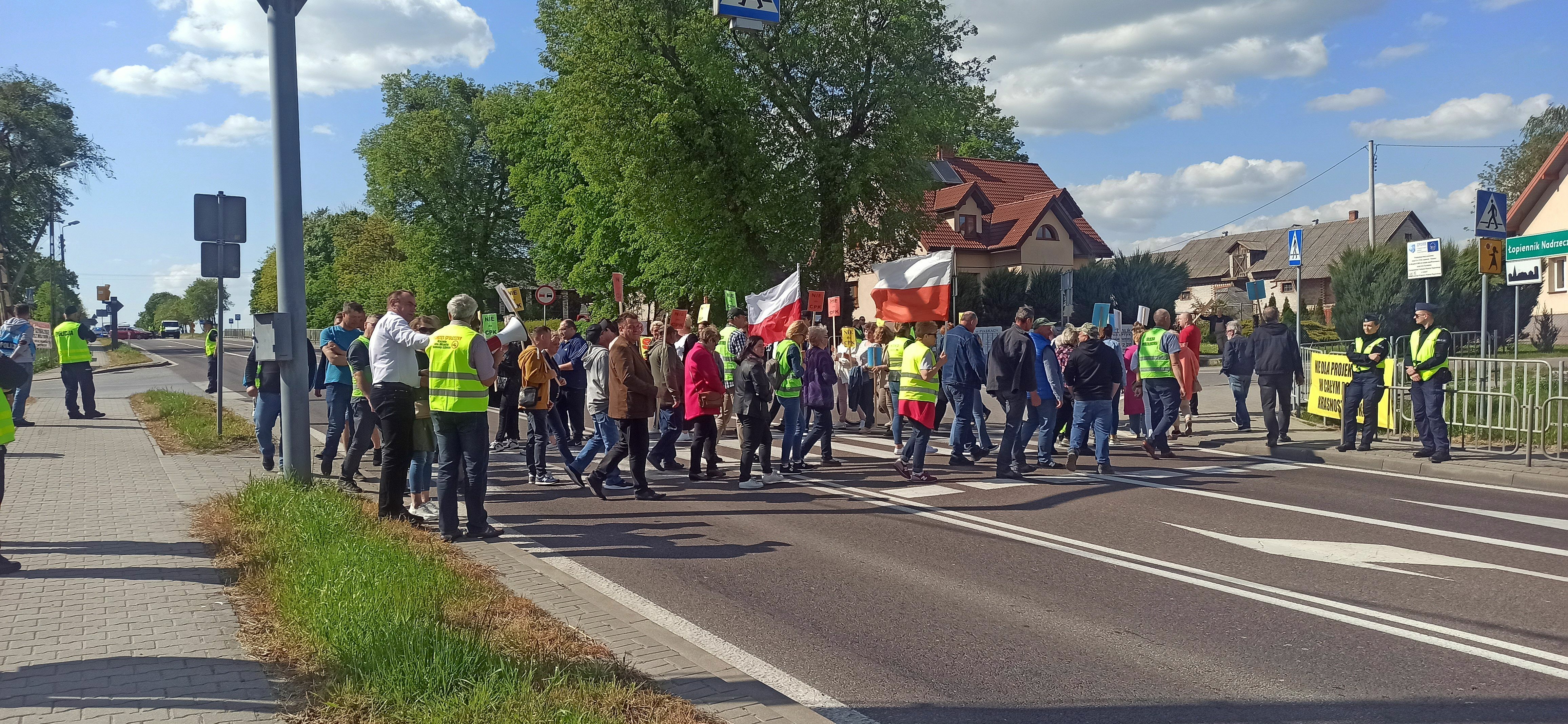 Mieszkańcy nie ustępują ws. linii do CPK. Ponownie blokowali przejazd krajówką