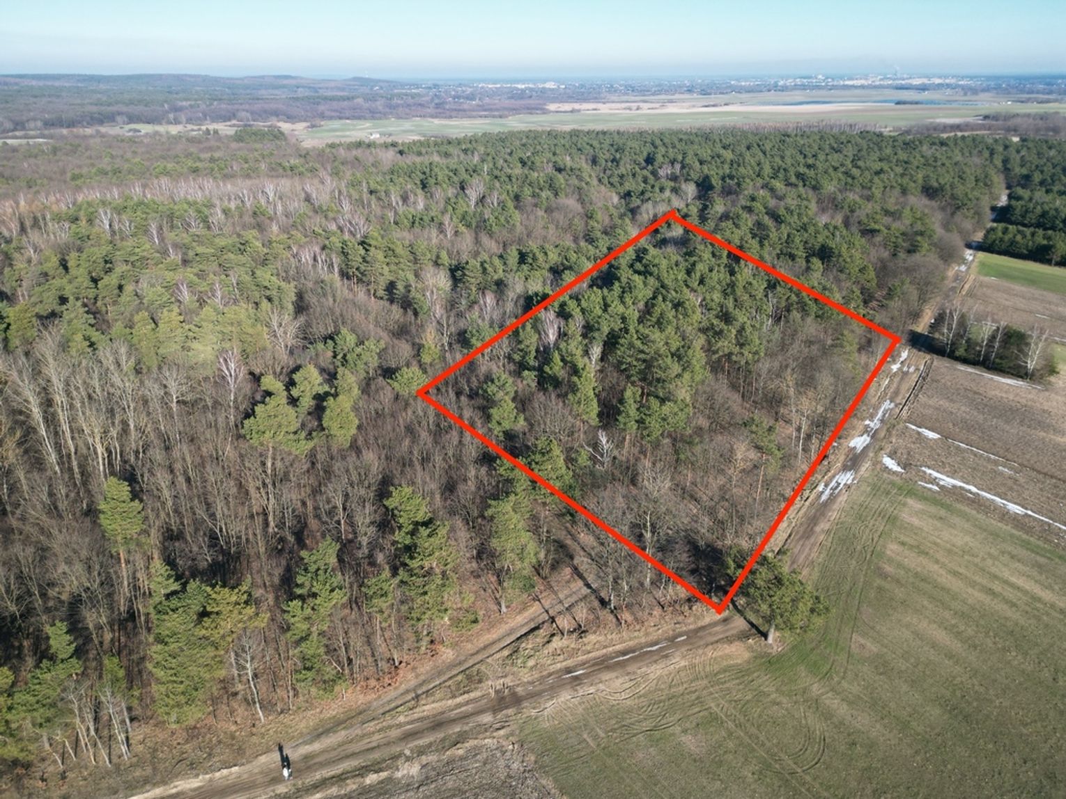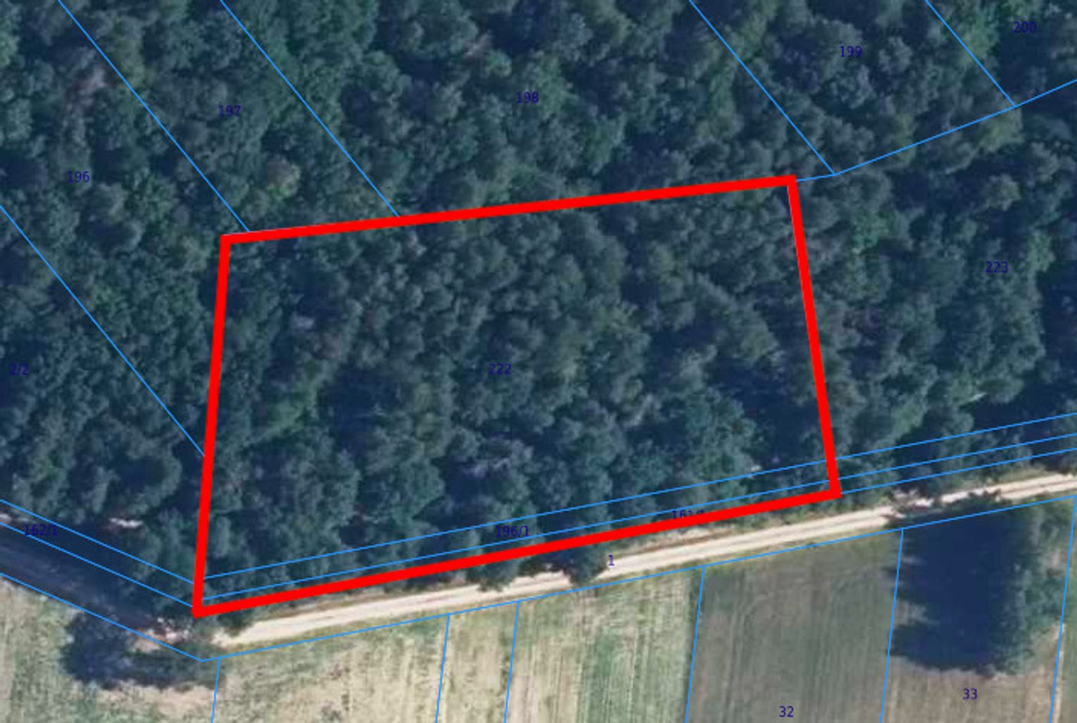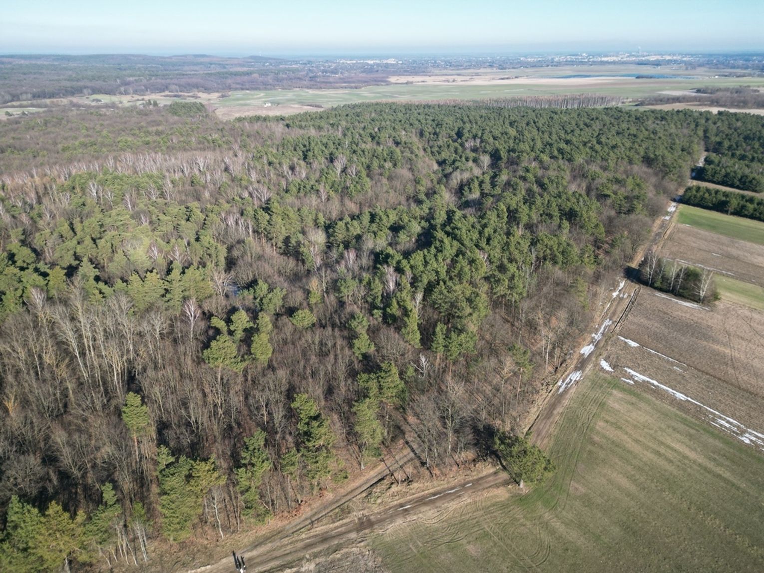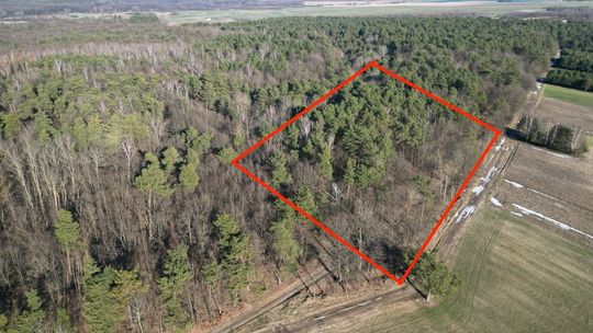 Działka o powierzchni 6500m2 ze starodrzewiem (dąb, sosna, olcha). Las około 50-60 letni.