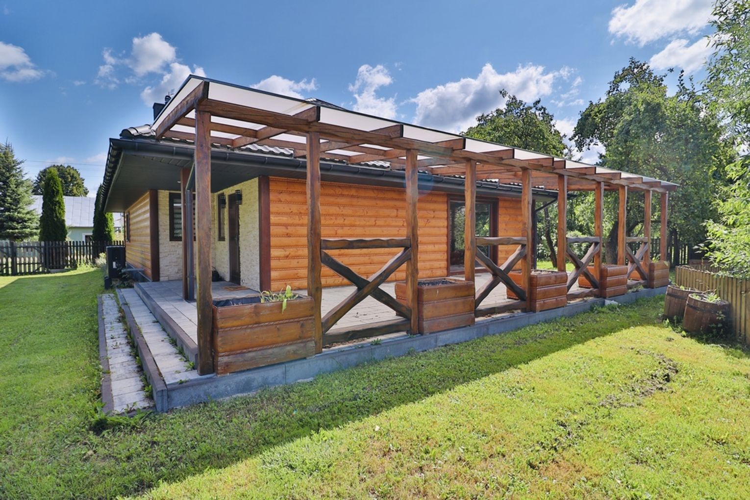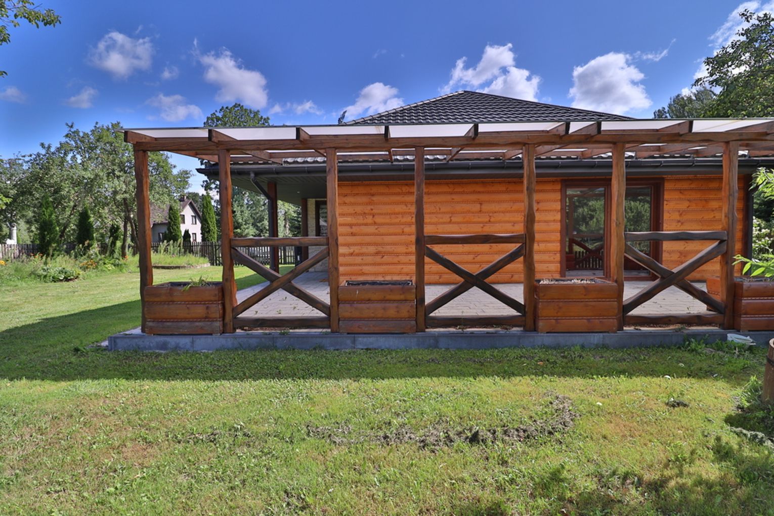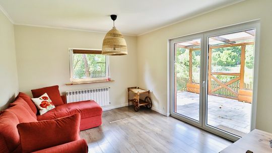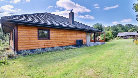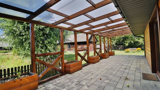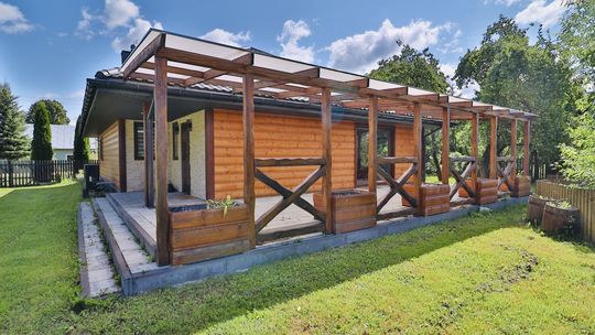 Dom jednorodzinny: 138 m², całoroczny, z wykończeniami z rzeźbionego drewna sprowadzonego z polskich gór.
