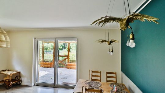 Dom łączy w sobie współczesny standard życia z urokiem wiejskiej posiadłości.