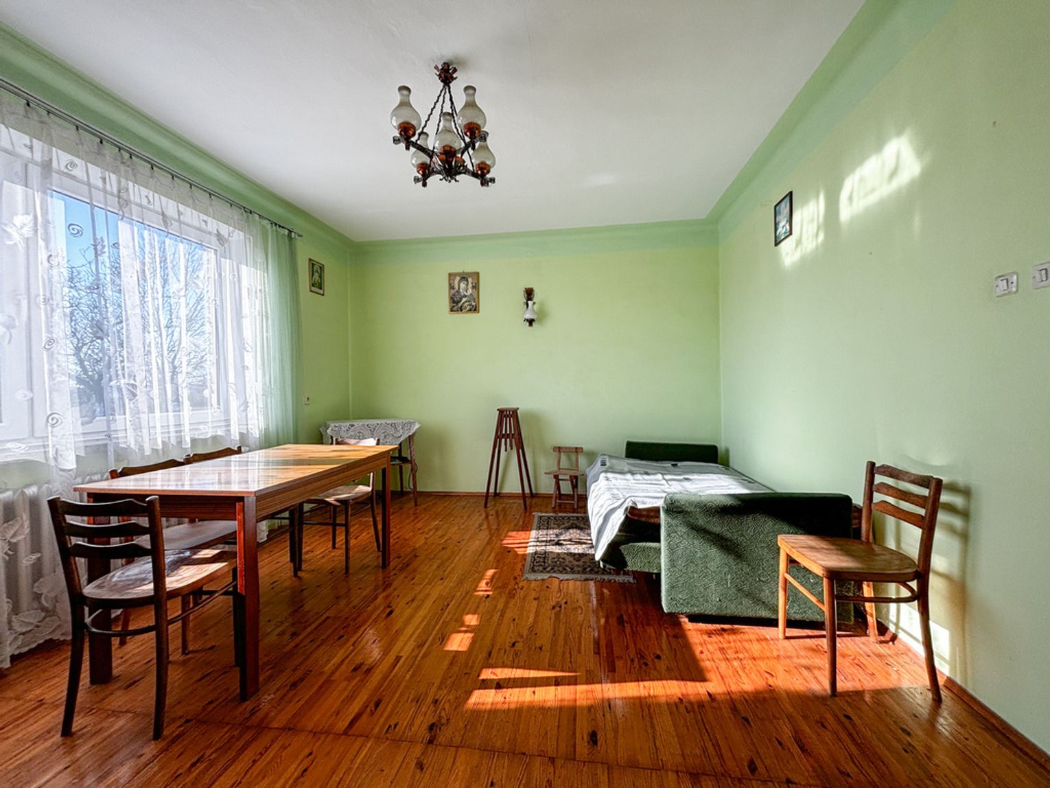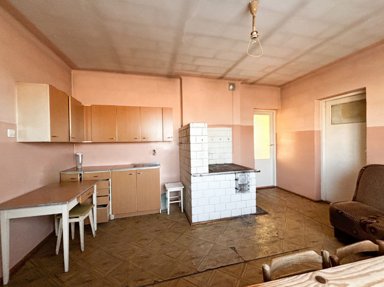 • Powierzchnia: 70 m² - składa się z 3 pokoi, kuchni, przedsionka ze schodami na poddasze i do piwnicy