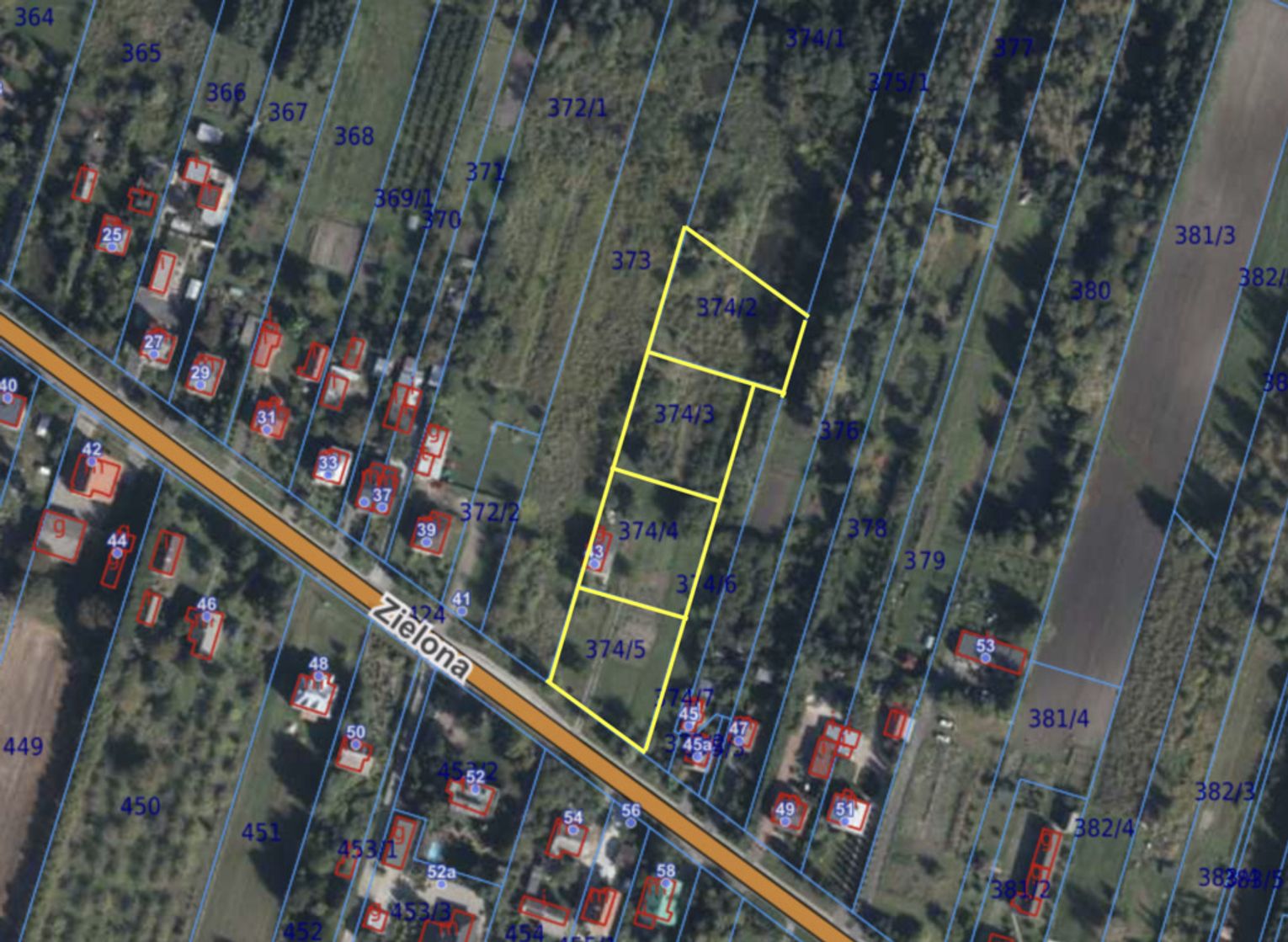 - działka nr 374/2 o powierzchni 1600 m2 - cena 180.000 zł