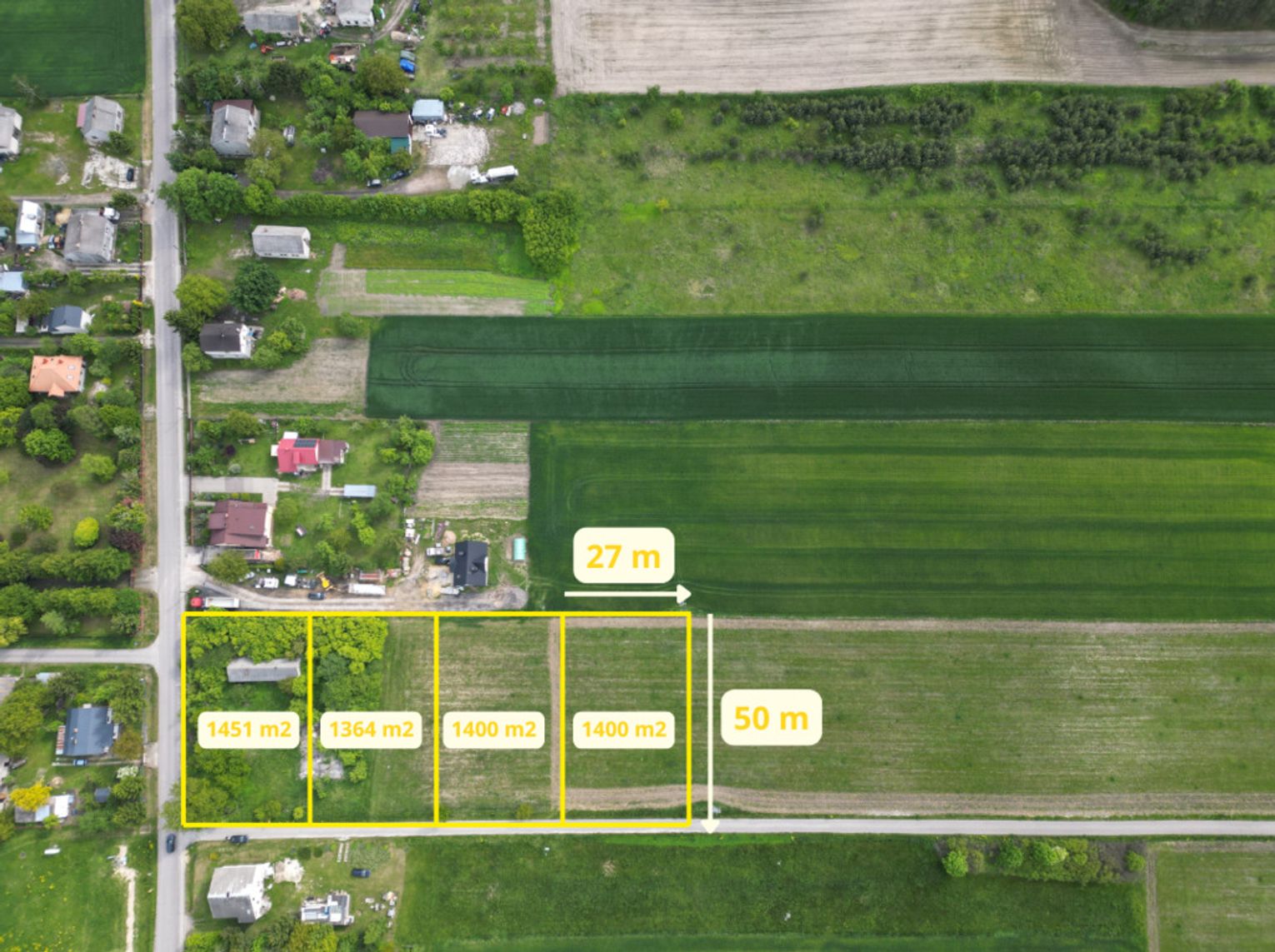 Działki charakteryzują się płaskim ukształtowaniem terenu i mają wymiary: