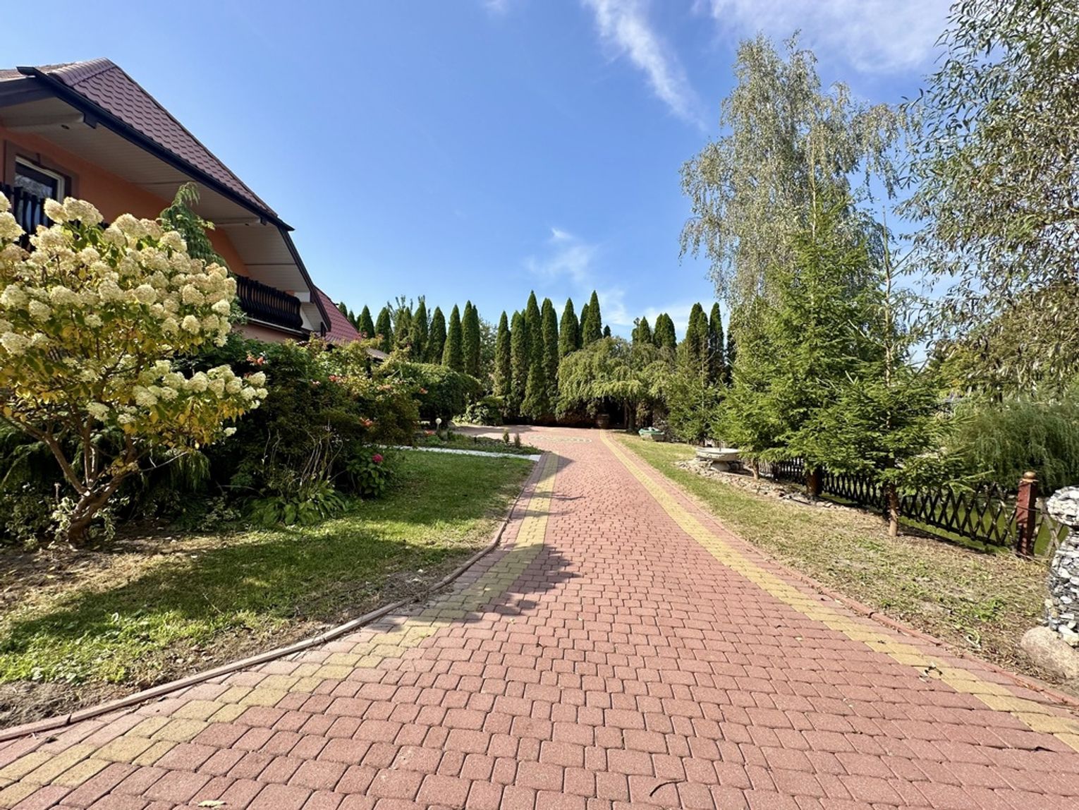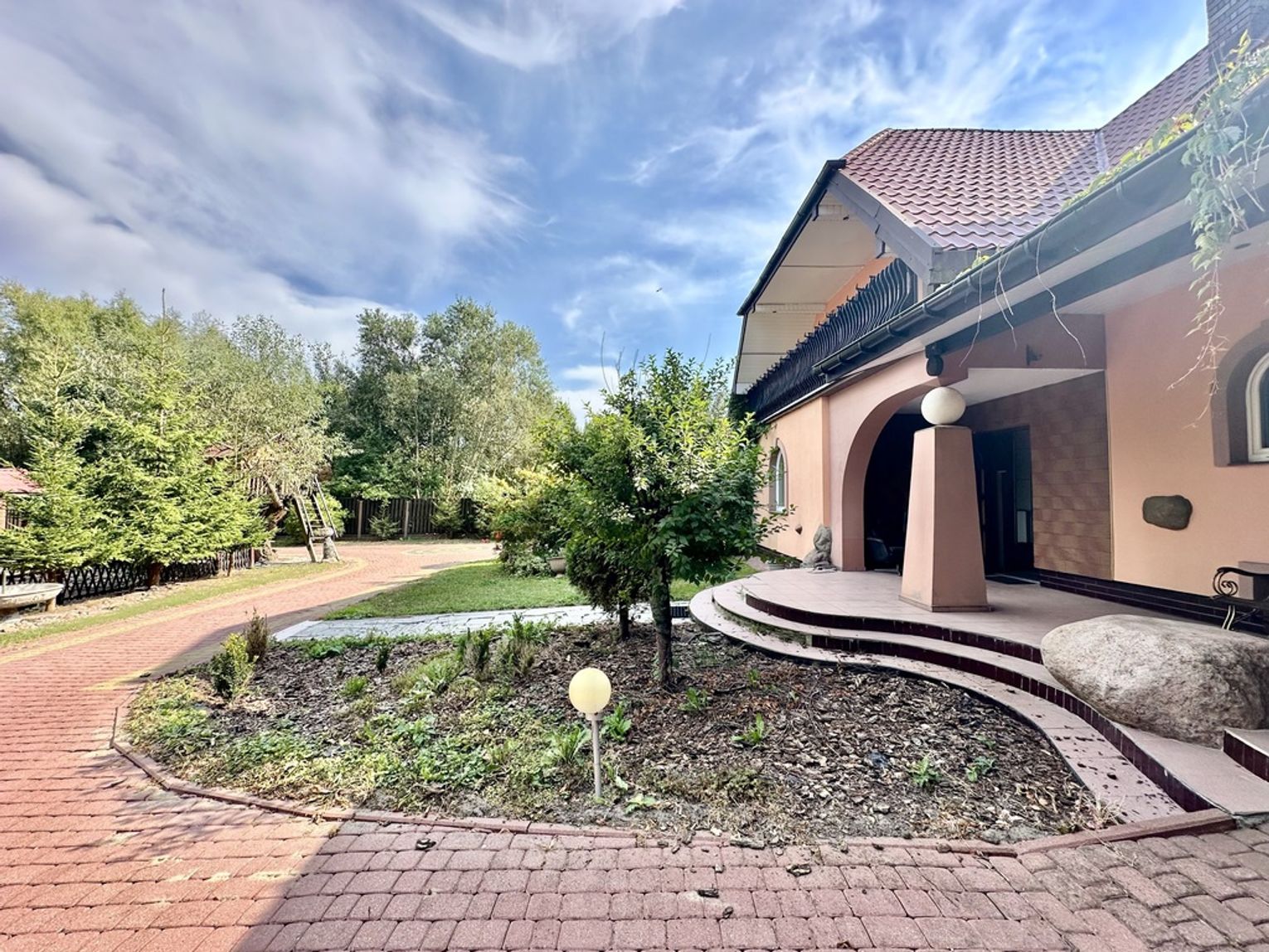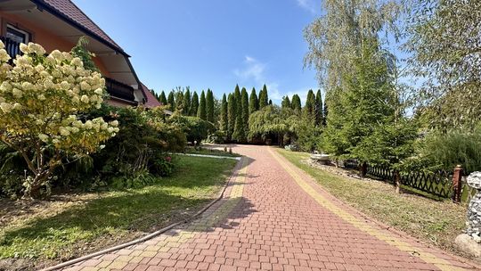 - Działka: zagospodarowana, z częścią wyłożoną kostką